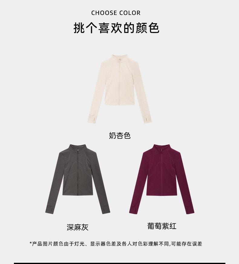 秋冬立领半高领撞色分割拉链修身户外运动外套健身跑步瑜伽上衣