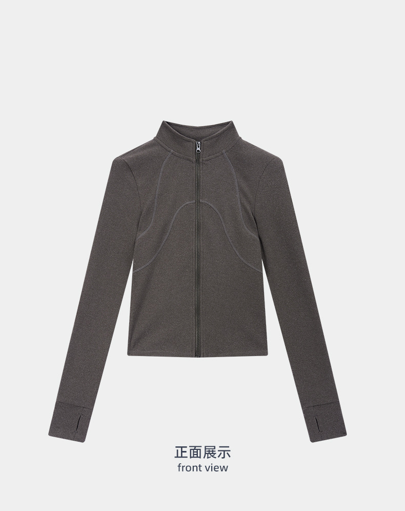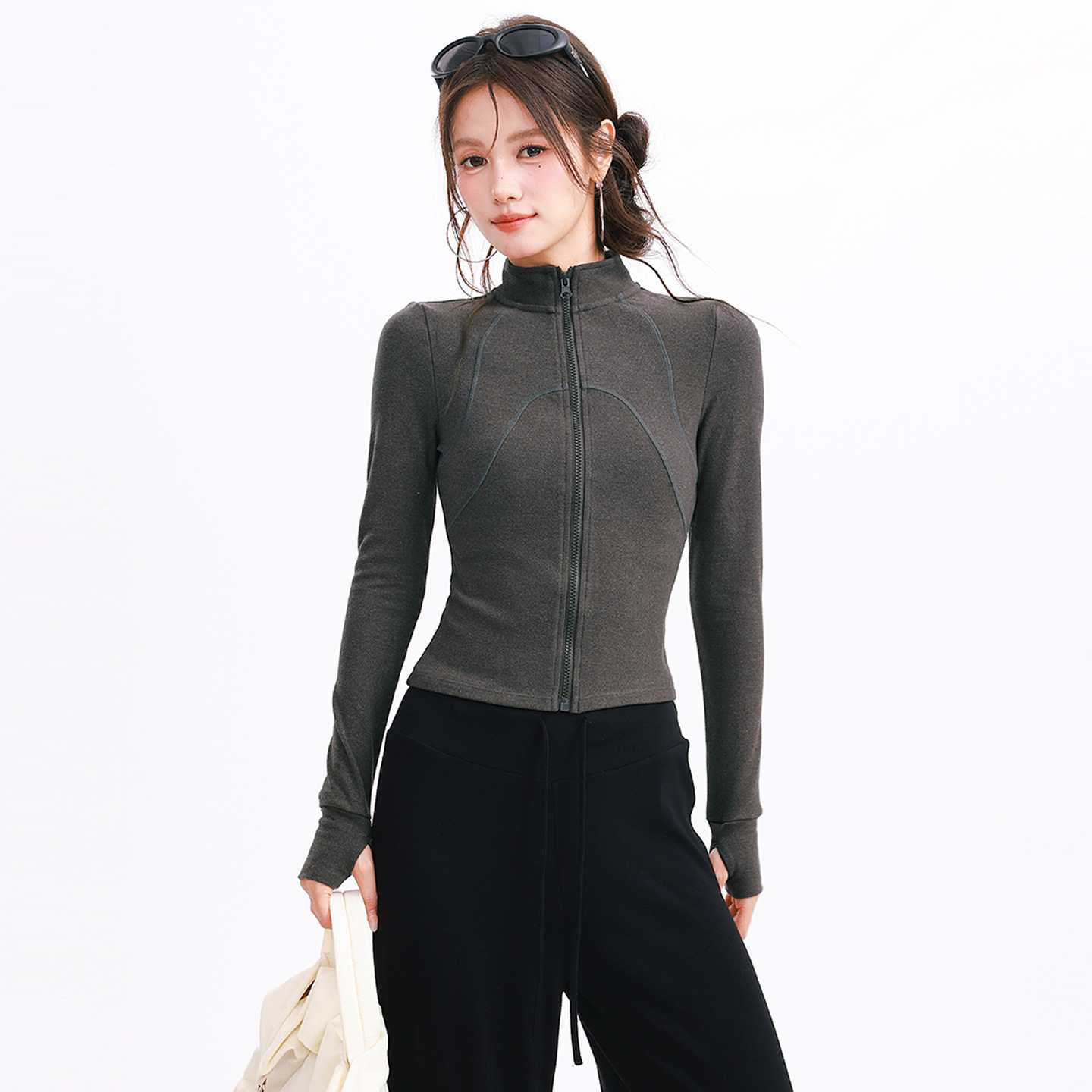 跨境秋冬瑜伽服外套普拉提跑步长袖立领修身德绒显瘦运动上衣
