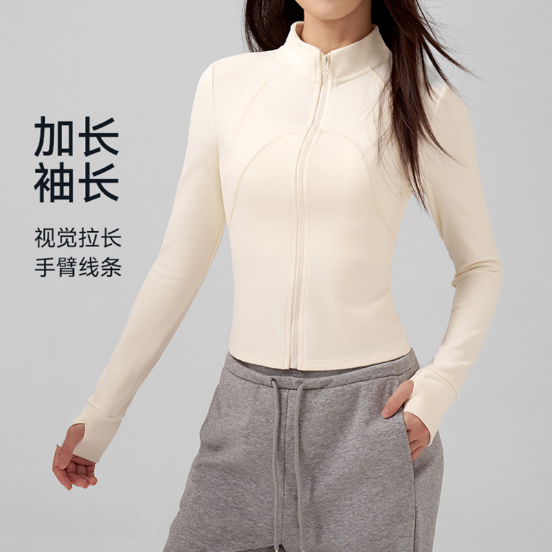 秋冬绒感防风保暖户外运动小立领双开拉链磨毛瑜伽健身修身外套女