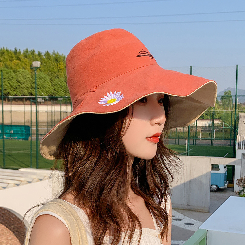 韓国版の両面の小さい菊の漁師の帽子の女性の夏の日系は顔の潮を遮って百合の日よけの大きい太陽に沿って日よけの帽子を遮ります。