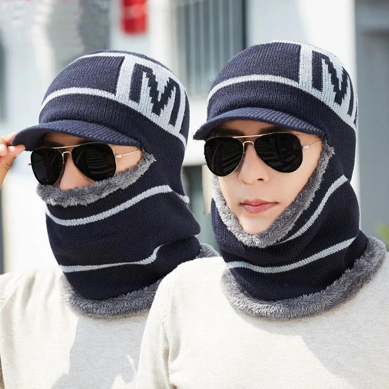 男性帽子卸売り2021冬の新型電車はベルベット保温綿帽子の首を保護するニット毛糸帽子に乗る