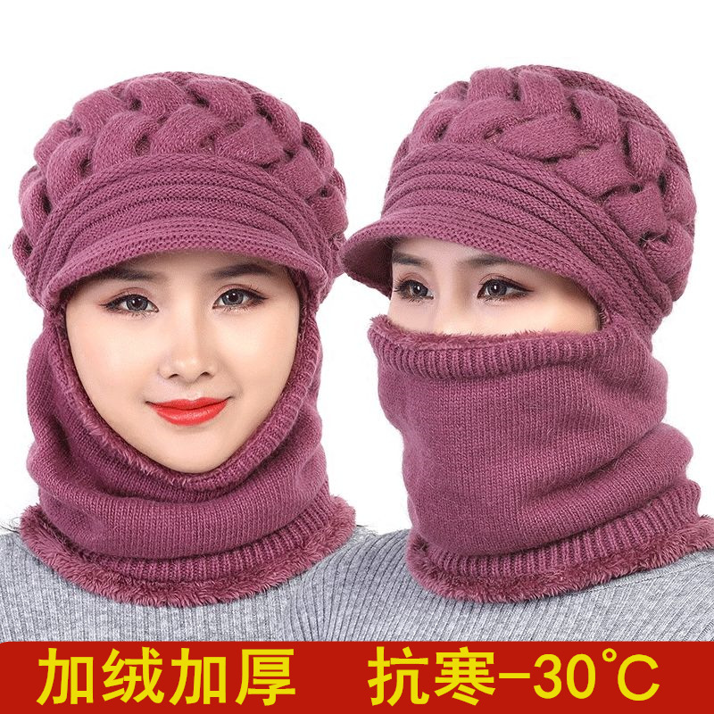 中高年の帽子の女性の冬の連体の毛糸の帽子とベルベットの保温は、首を囲むお母さんの帽子のニット帽を厚くしている