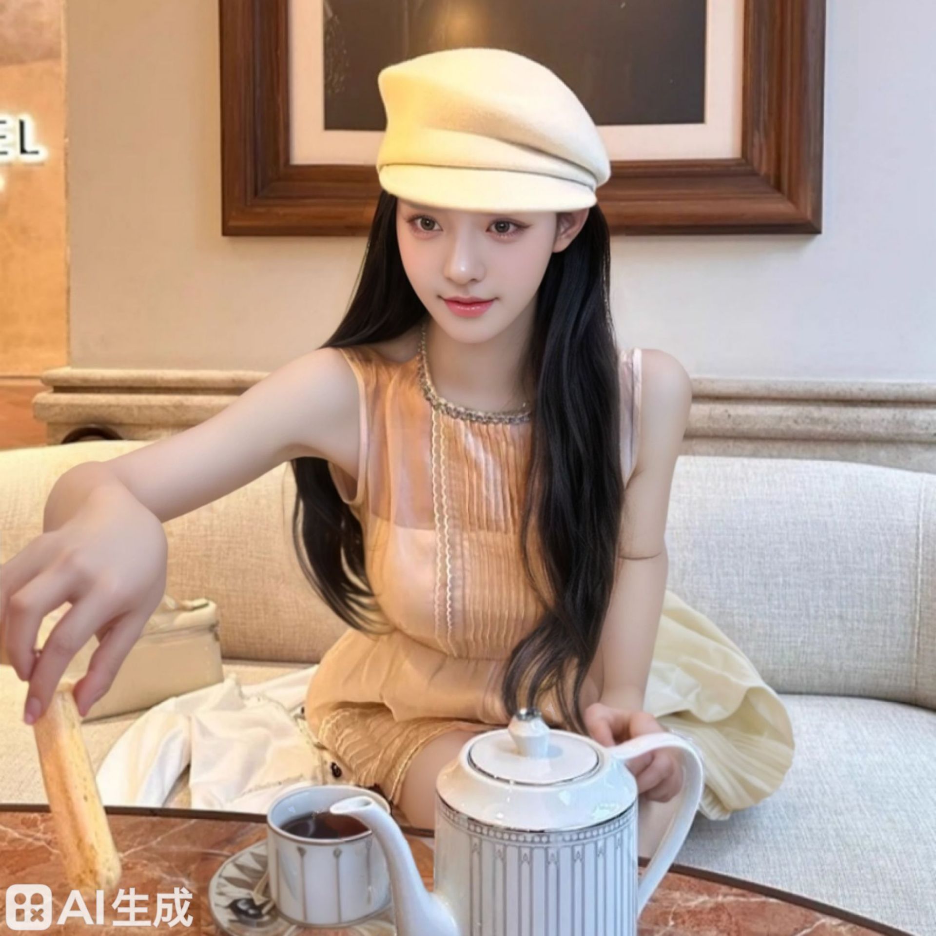英伦风复古前进帽日系时尚百搭女春秋季出游百搭显脸小反戴报童画