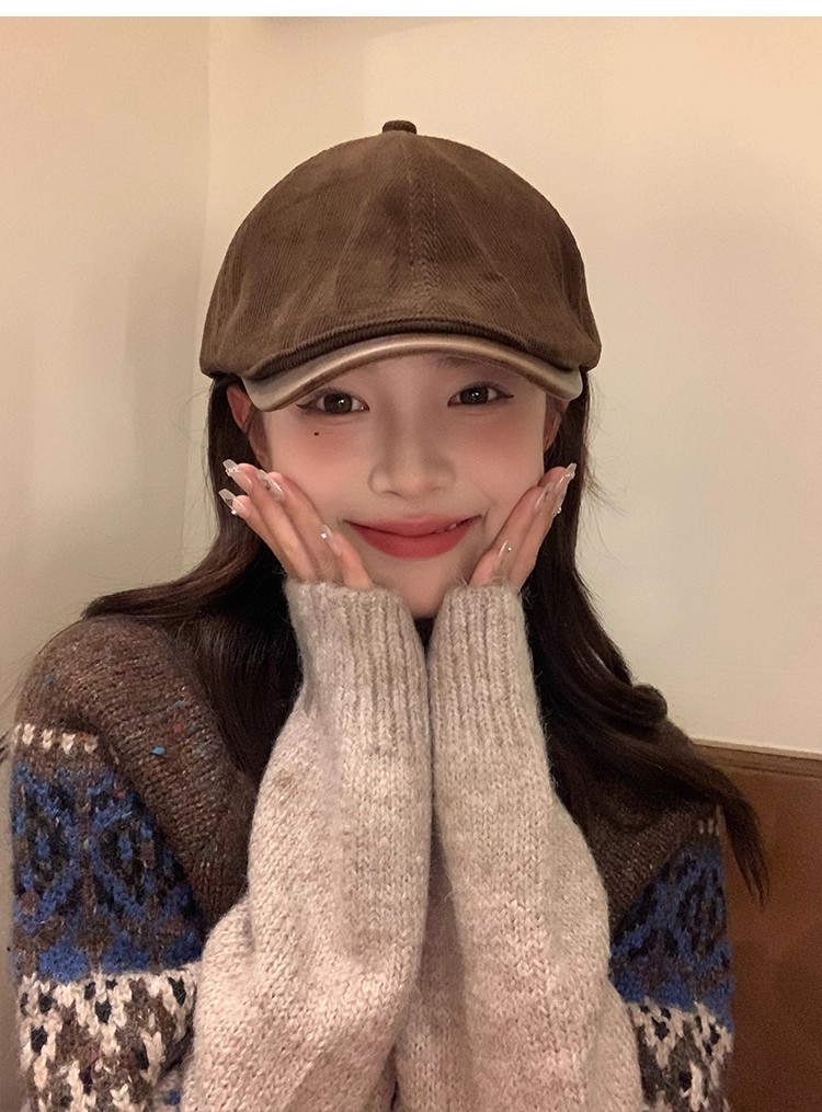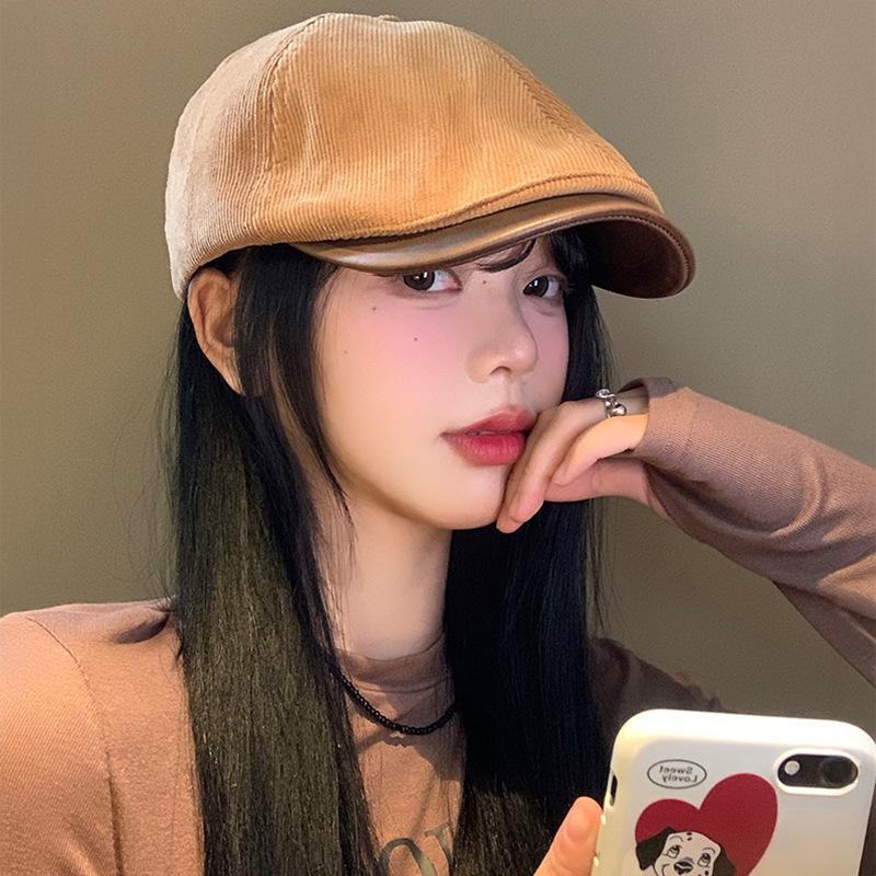 秋冬レトロコーデュロイ前進帽ファッション英倫風報童帽日系街頭文芸鴨舌帽子男女
