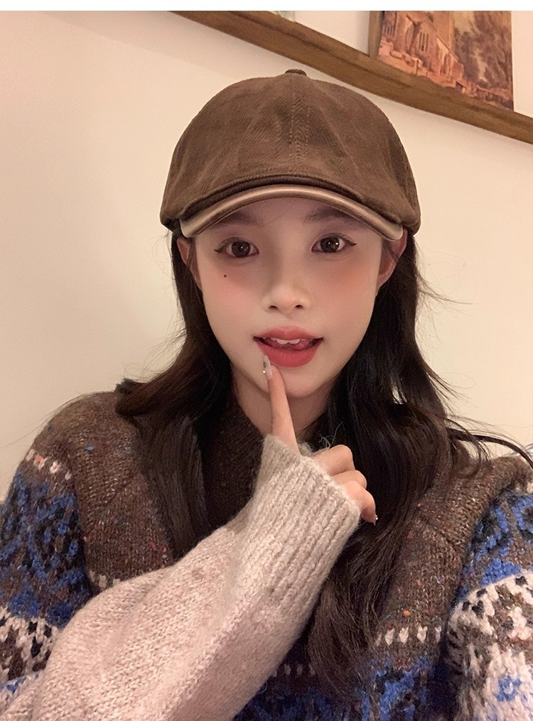 复古灯芯绒前进帽秋冬时尚英伦风报童帽日系街头文艺鸭舌帽子男女