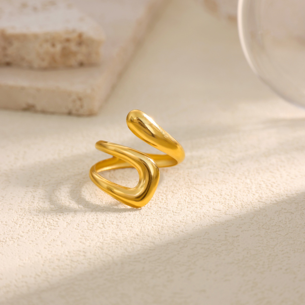 ヨーロッパとアメリカの国境を越えたホットセールステンレス鋼オープンリングメッキ 18K ゴールドシンプルな不規則な形のリング女性のハンドジュエリー