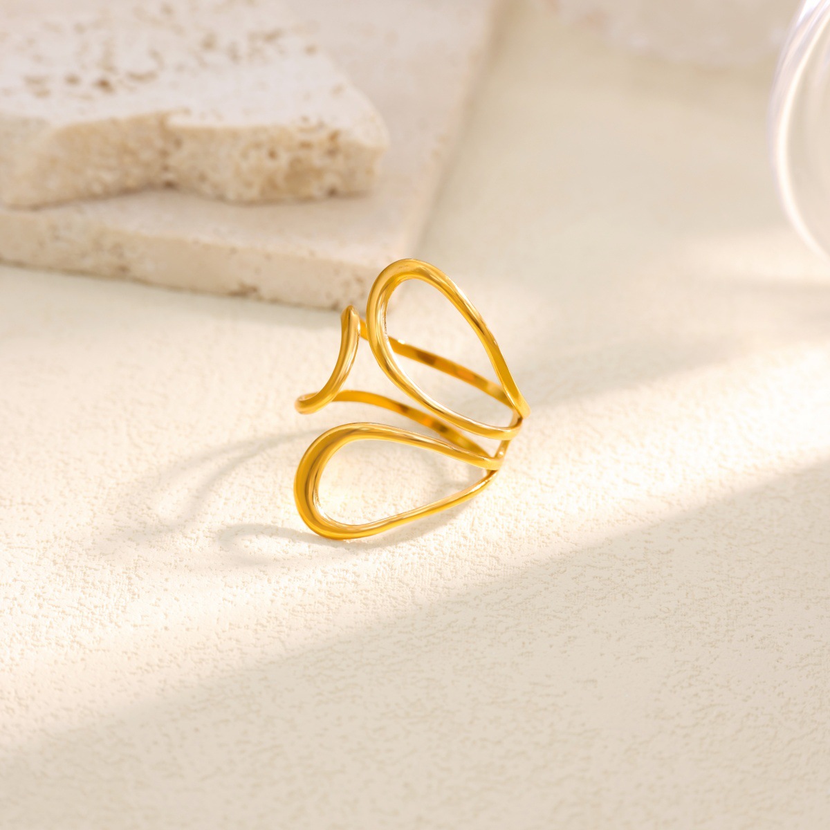 跨境爆款欧美线条钛钢戒指不规则几何 18k镀金不锈钢饰品开口指环