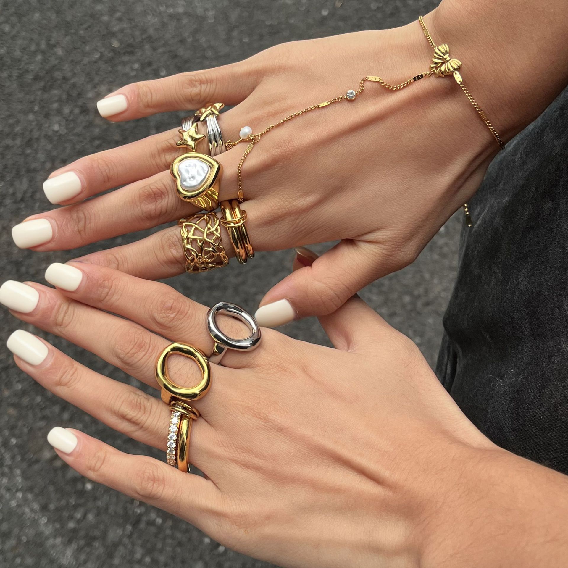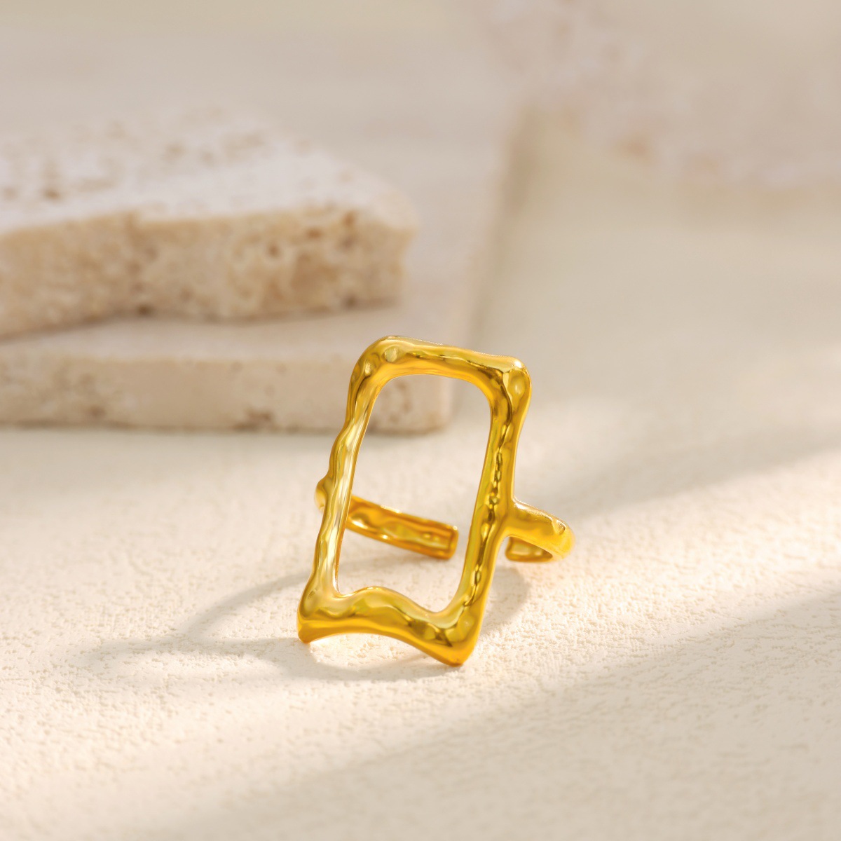 INS スタイル韓国スタイルカジュアルミニマリストデザインジュエリー幾何学的な中空不規則なリングチタン鋼ゴールドメッキリング