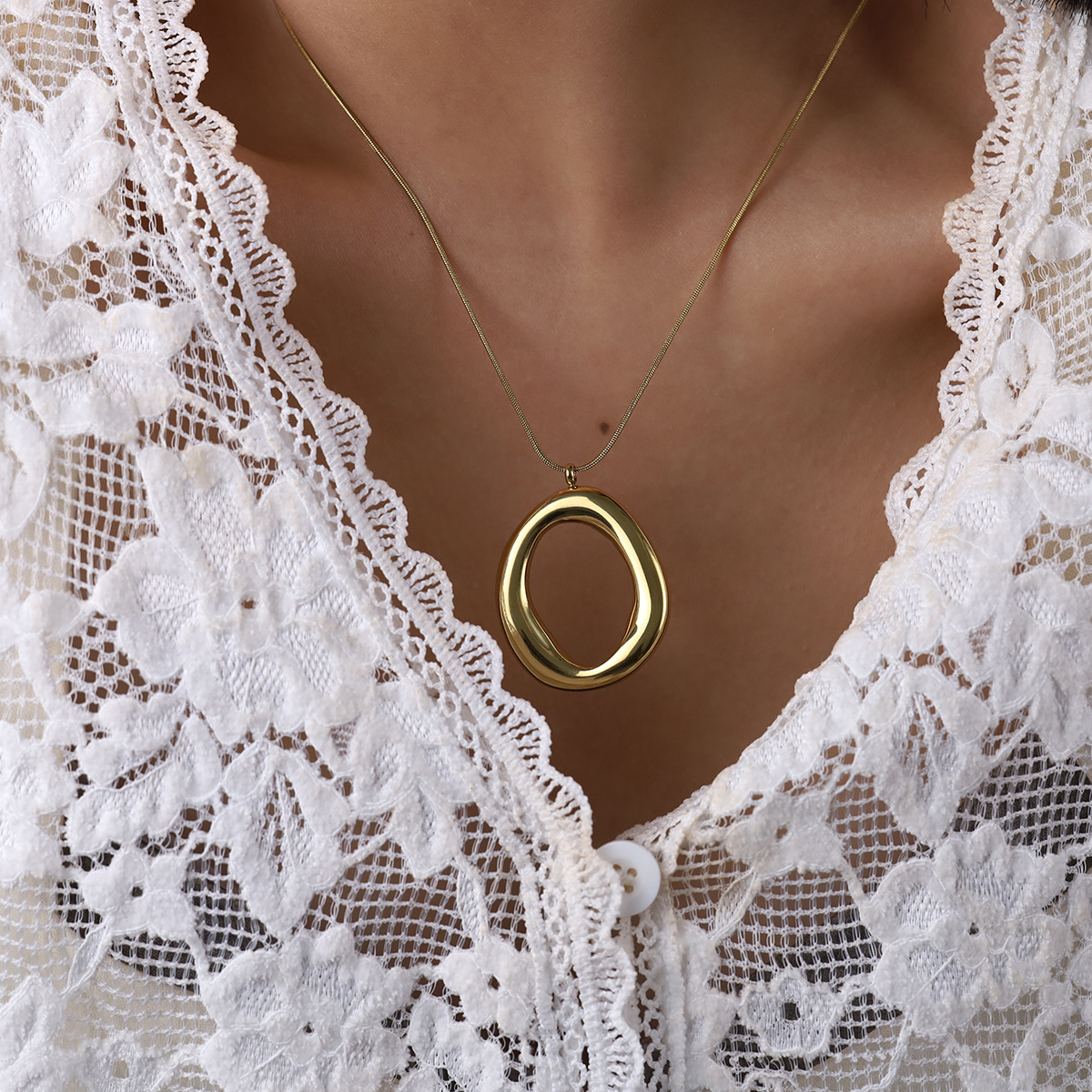 欧米ファッション小衆気質幾何学ネックレスステンレスメッキ18k金シンプル光沢o型リングペンダントネックレス
