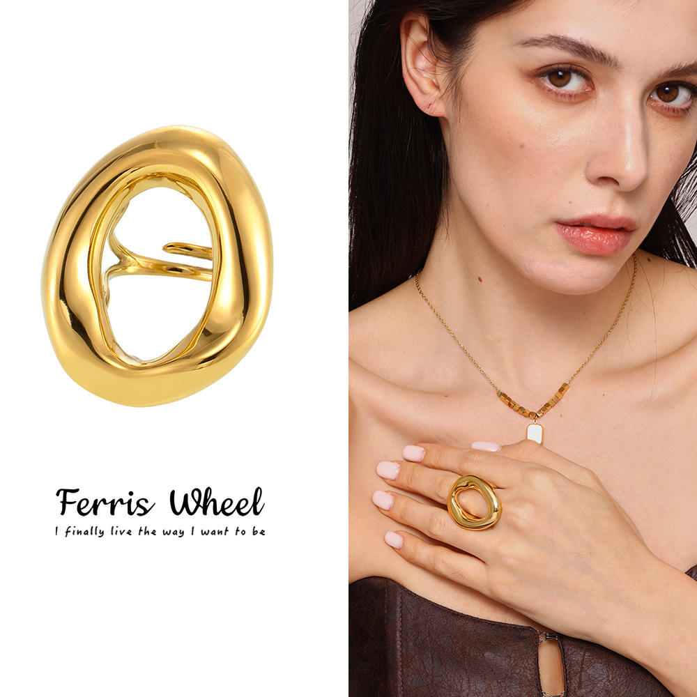 観覧車ステンレスPVD真空メッキ金指輪軽豪華食指戒誇張開口リング保色手飾り女