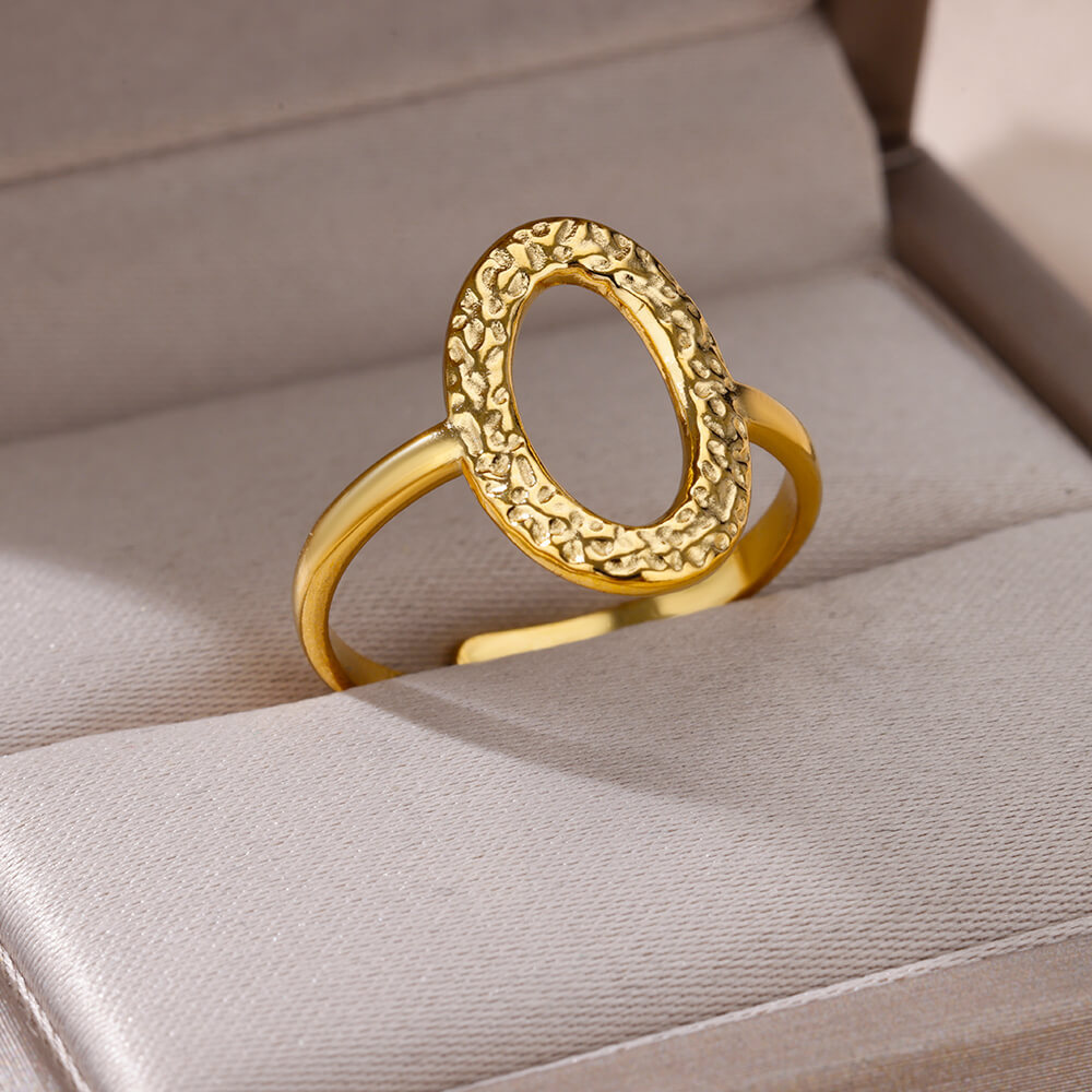 欧美跨境新品镀18K金不锈钢开口戒指时尚光面款镂空圆形戒指饰品