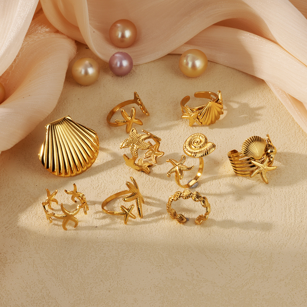 国境を越えた人気のステンレス鋼ヒトデリングゴールデンスターオープン調節可能なリング女性の夏の海辺の休暇アクセサリー