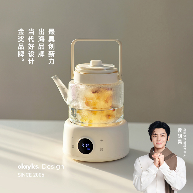 Olayks立時養生ポット小型オフィス恒温家庭用多機能ガラス湯たんぽ煮ティーポット