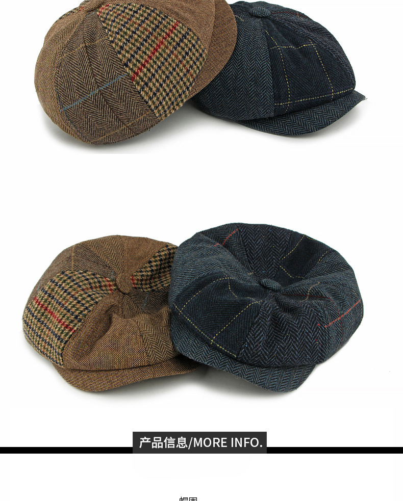 复古帽子男英伦格纹羊毛呢贝雷帽加绒加厚保暖鸭舌帽女士前进帽潮