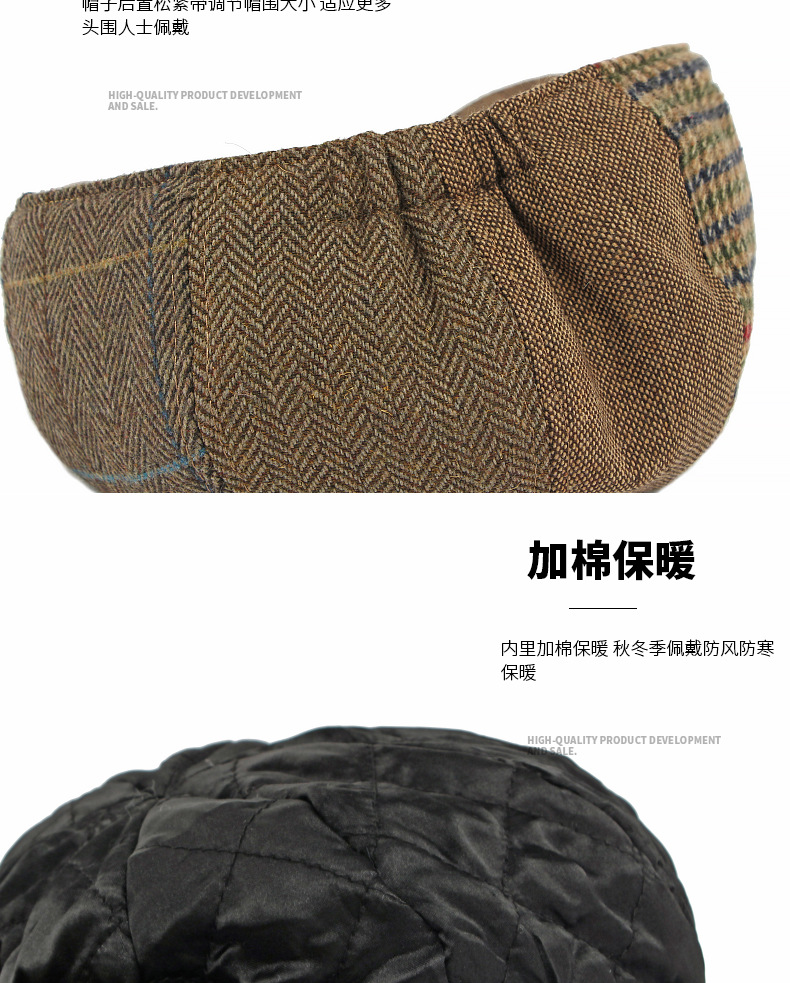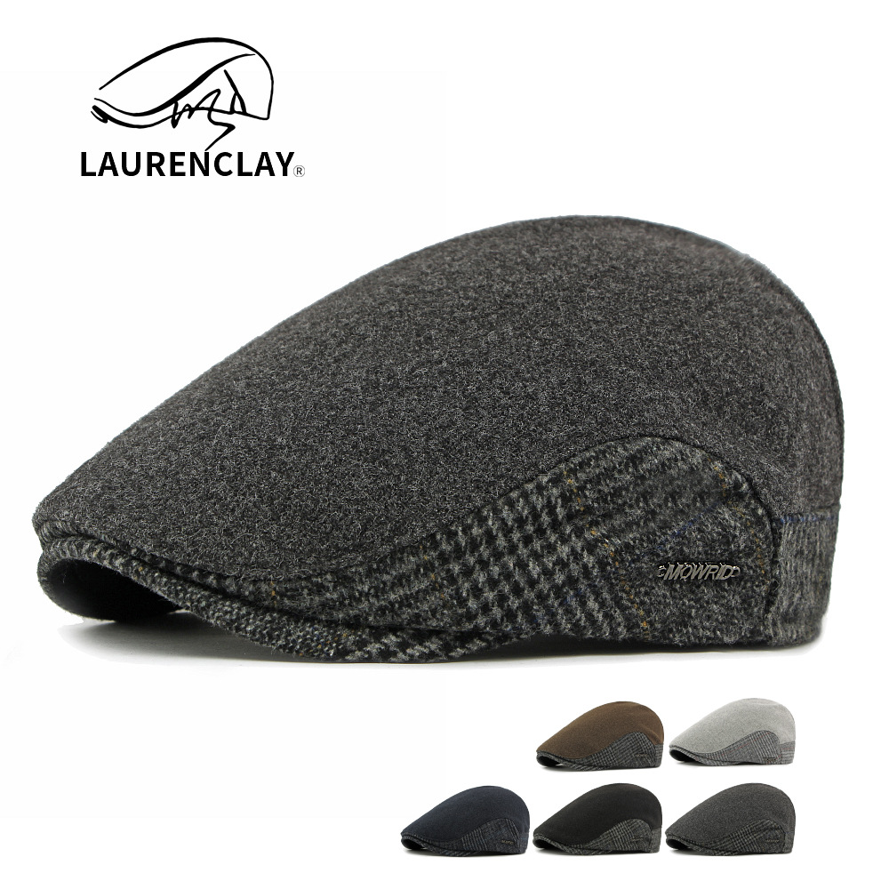 中高年男性向け秋冬帽子、英国風クラシックチェック柄ウールベレー帽、女性用ダックタンフロントハット