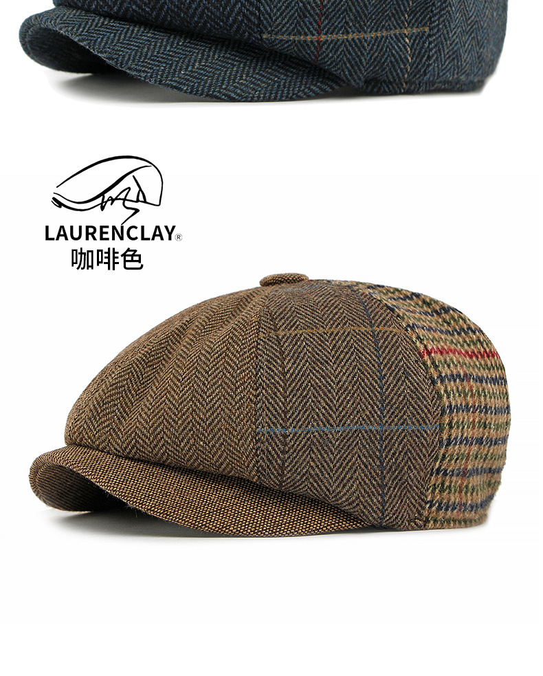 鸭舌帽子男士羊毛呢贝雷帽英伦复古八角帽女春秋新款经典报童帽潮