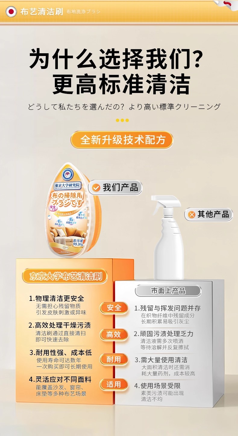 【日本专研】布艺科技布沙发清洁剂免水洗地毯清洗神器壁墙布床垫