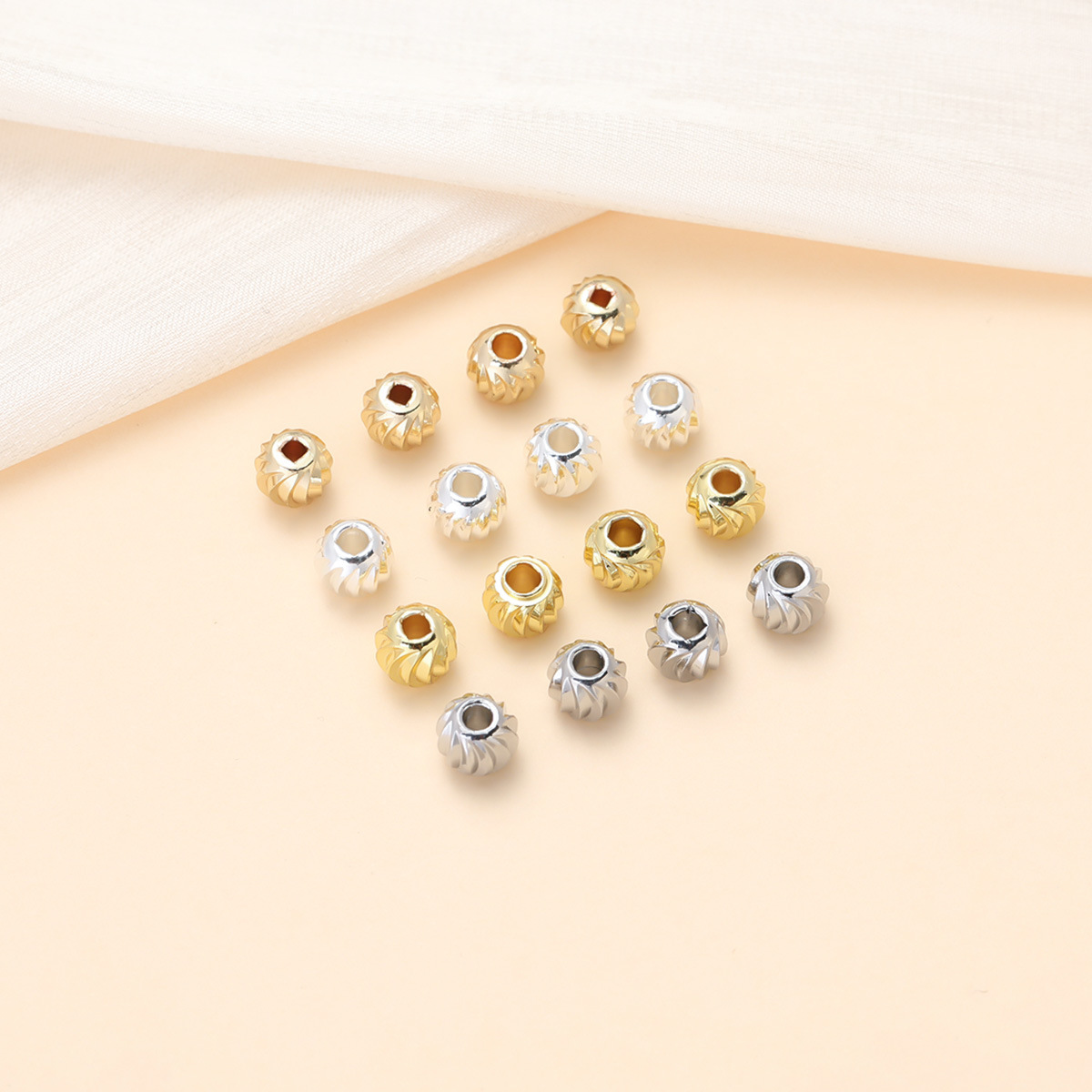 18Kゴールドメッキの色褪せないスイカビーズ、スペーサービーズ、DIYジュエリーアクセサリー、パンプキンビーズ、ルースビーズ、手作りブレスレットビーズ材料