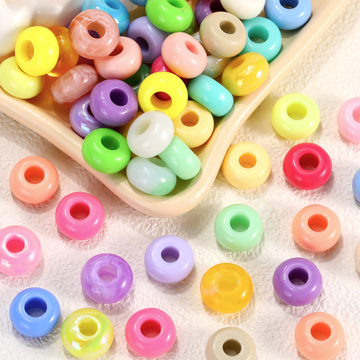14mm亚克力车轮珠扁珠镀彩大孔散珠 diy饰品配件手工串珠隔珠材料
