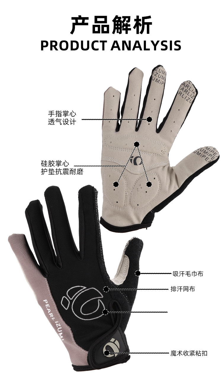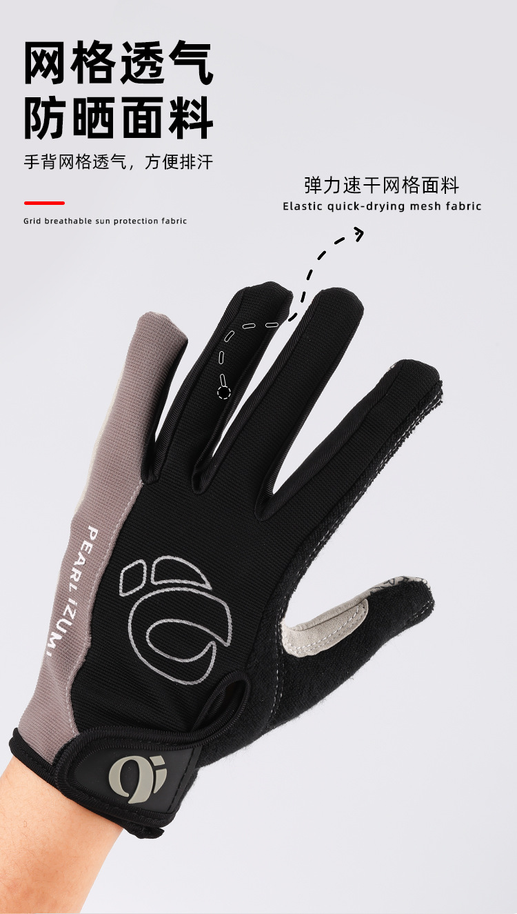 一字米全指手套 自行车公路车秋冬单车防震手套 骑行硅胶长指手套
