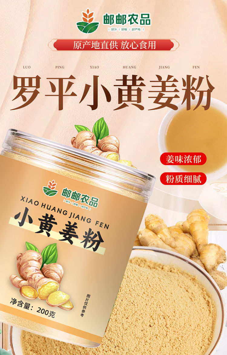 国货药材小黄姜粉200g冲饮食用生姜干粉纯正姜汁正品现货一件代发
