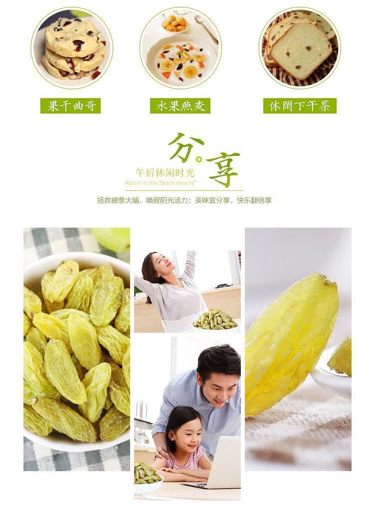 新疆葡萄干特产超大优质绿香妃5g 个厘米 无籽干净包即食