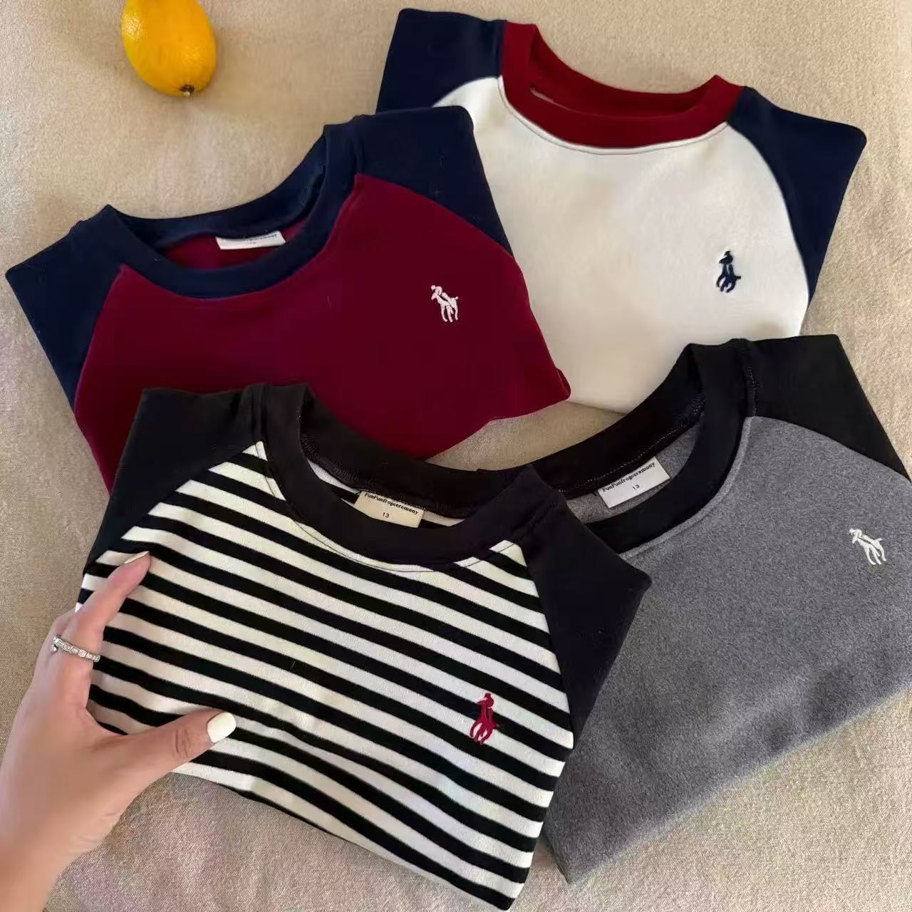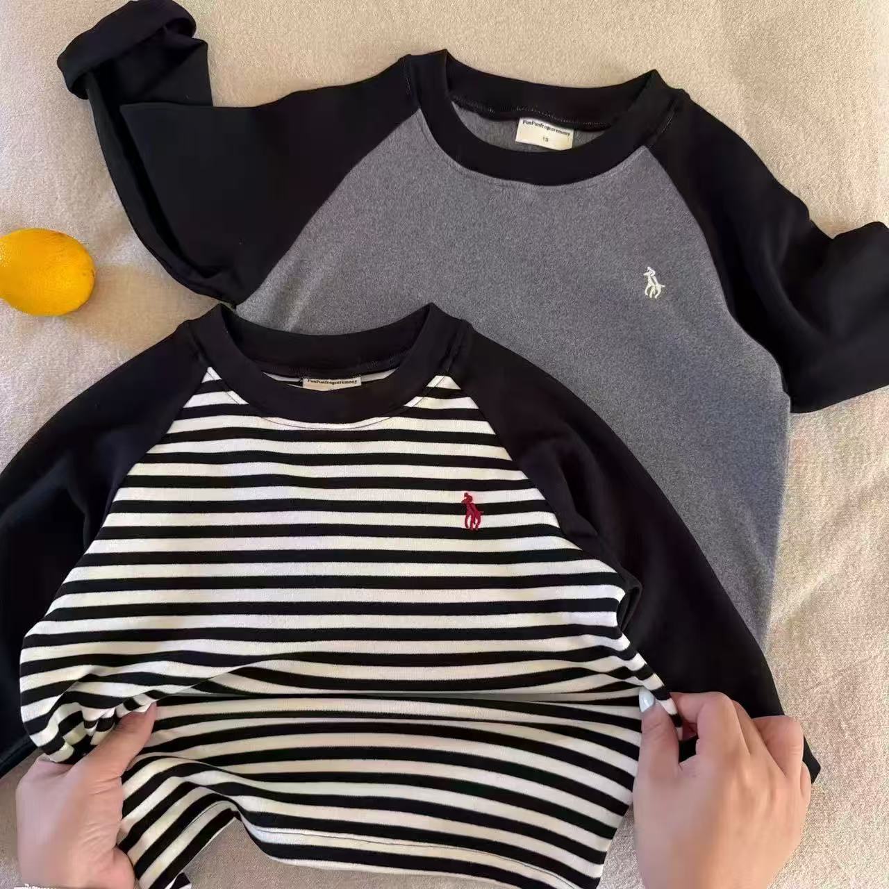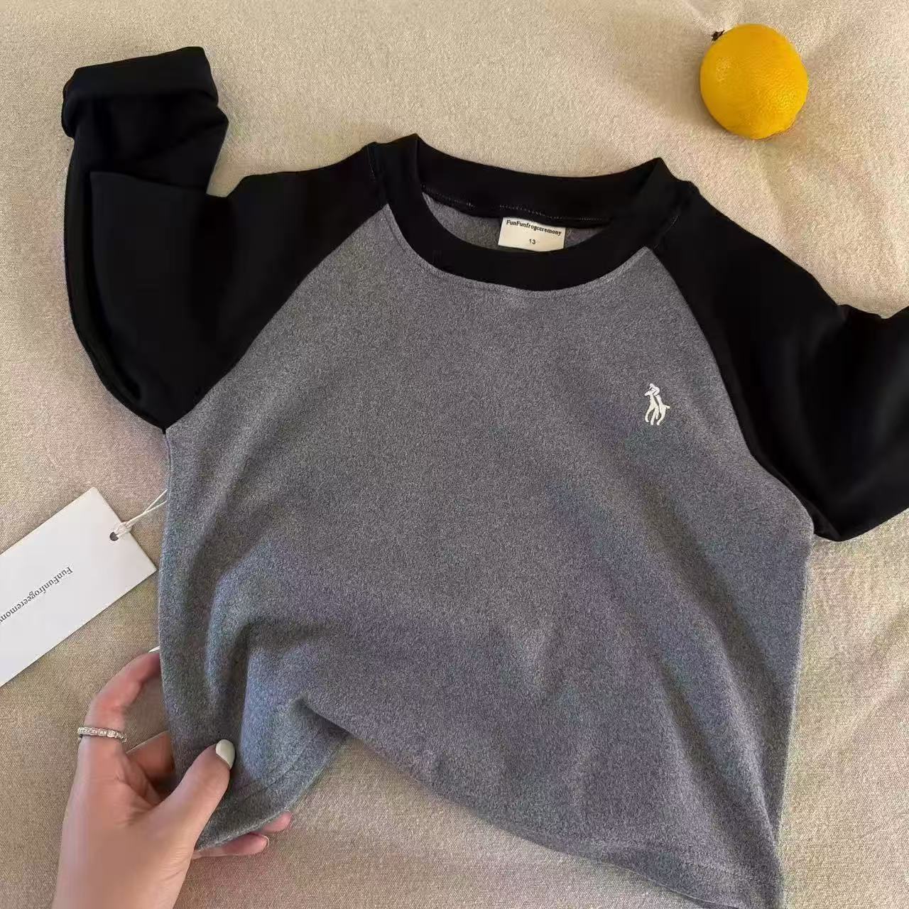 儿童澳绒打底衫长袖T恤男秋冬款小童撞色插肩袖条纹潮宝宝女加绒