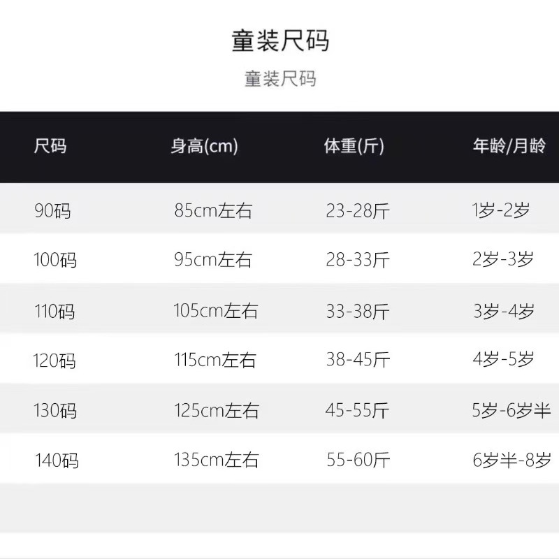 适合身高 90码,100码,110码,120码,130码,140码