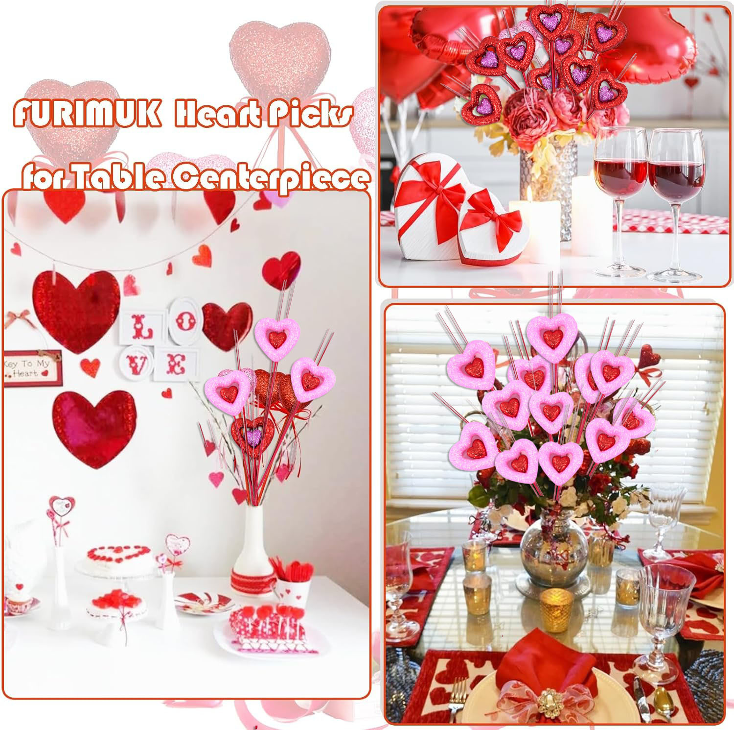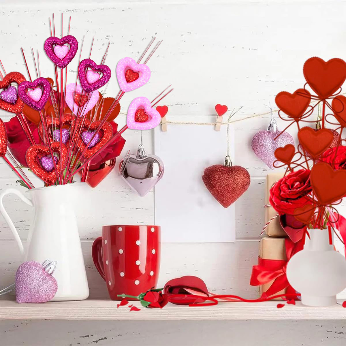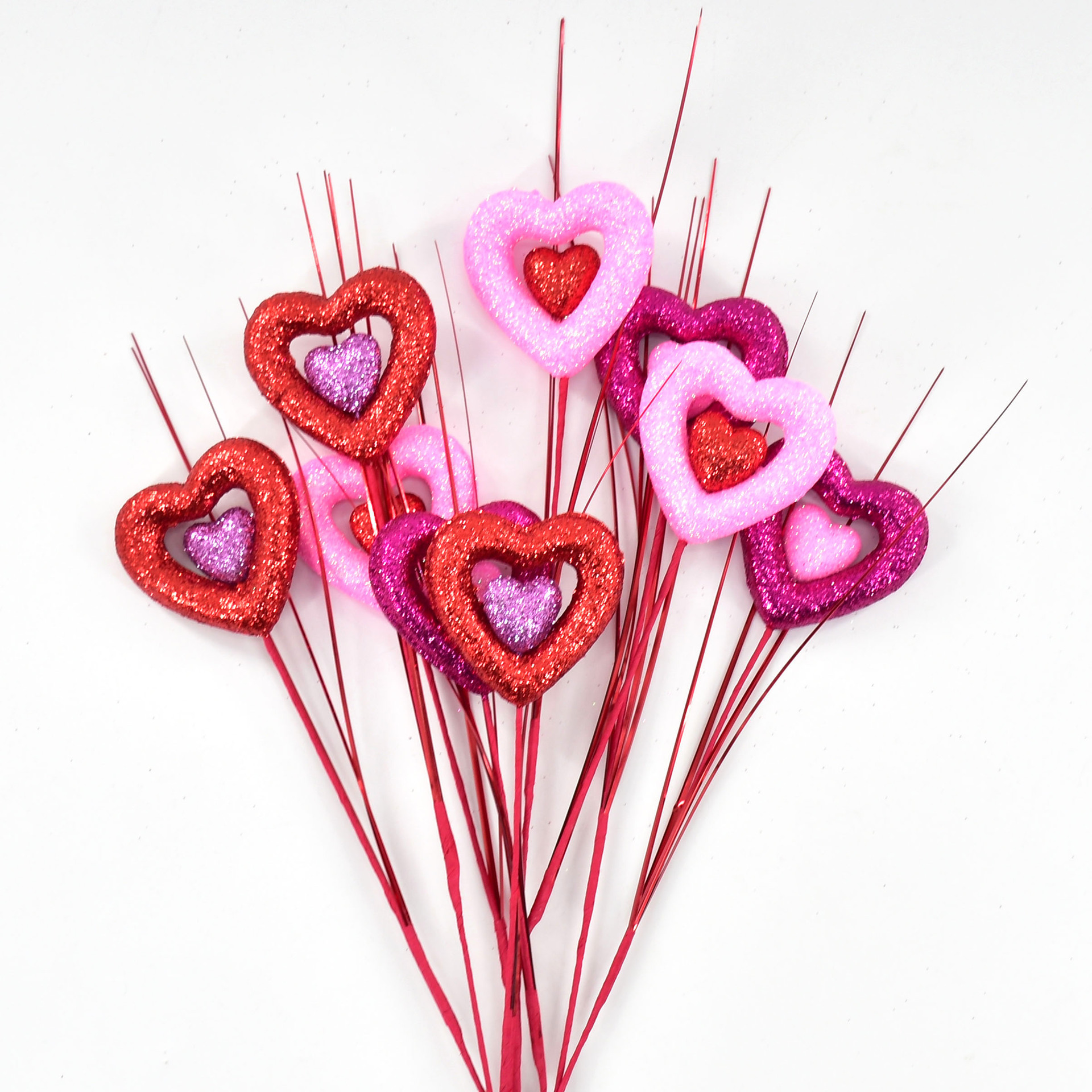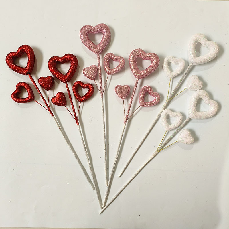 跨境新品泡沫爱心闪粉花枝婚庆节日装饰品桃心配件情人节爱心插枝