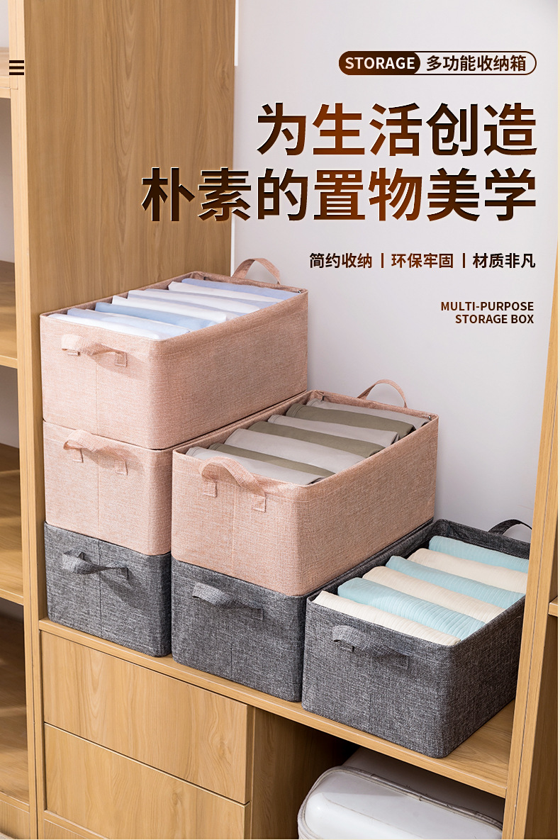 PP板天山棉麻收纳箱布艺可折叠抽屉式卧室衣柜收纳整理衣物储物