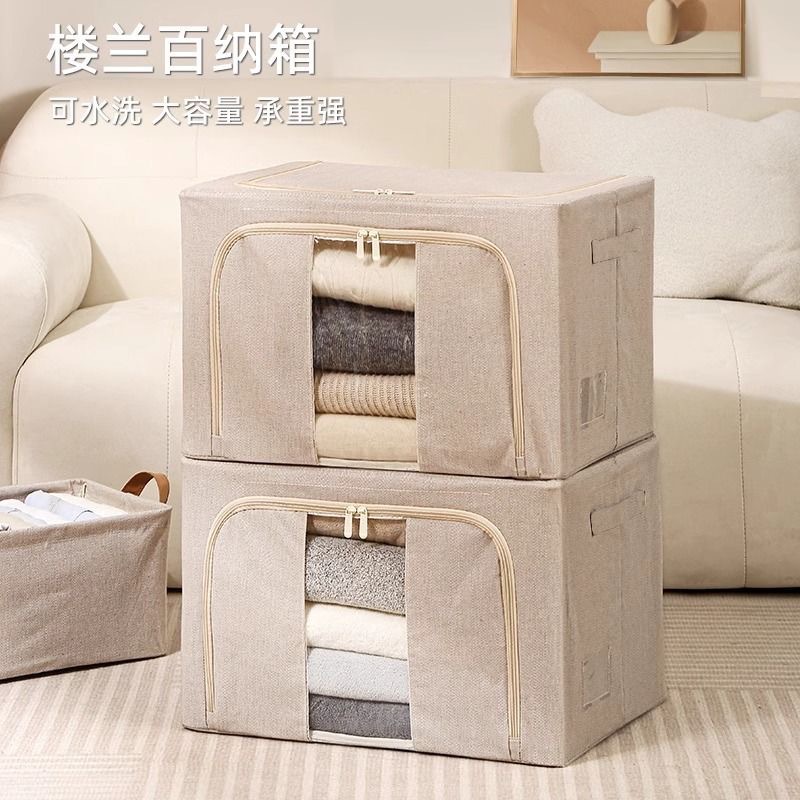 楼兰棉麻百纳箱大容量家用可折叠防霉防潮衣物整理收纳箱收纳神器