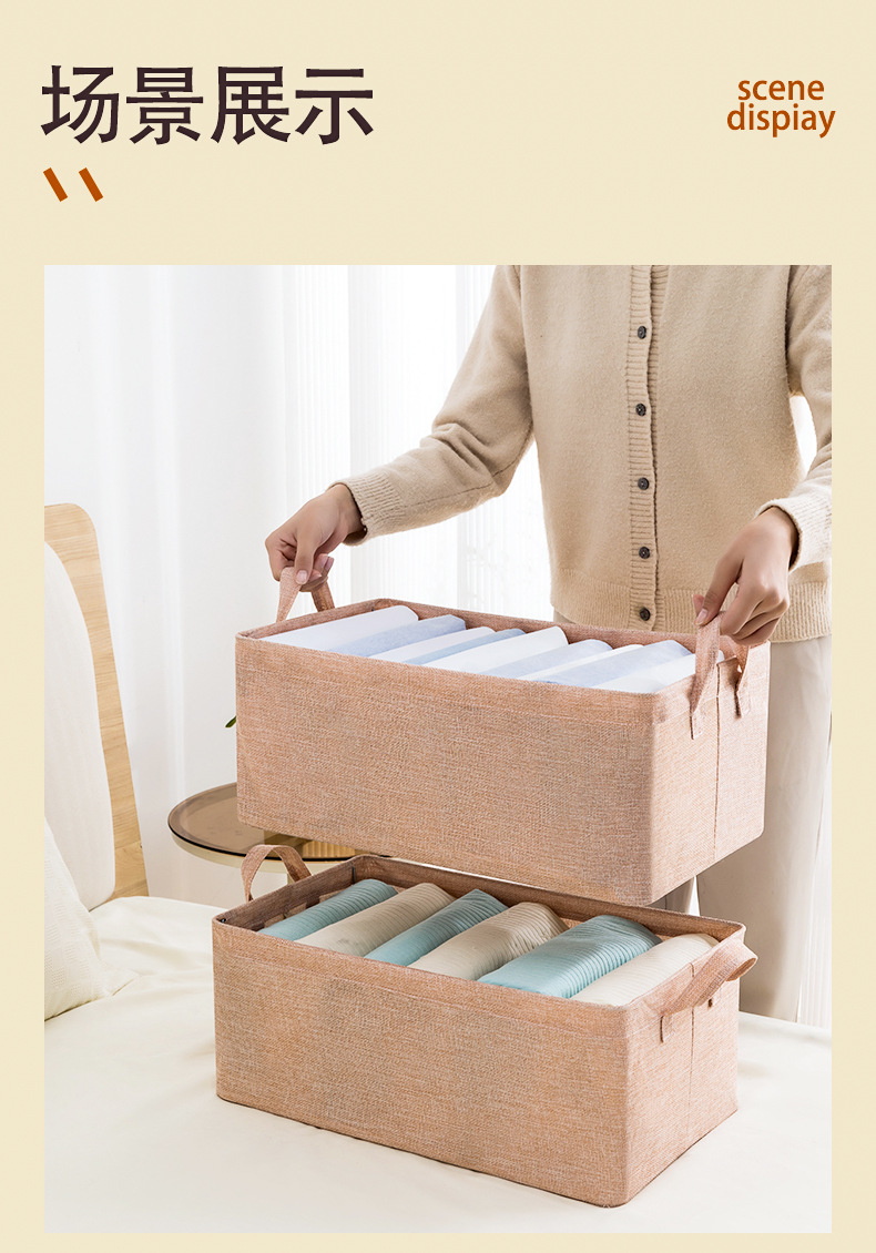 现货一件起订 | 衣服裤子收纳盒布艺家用折叠衣物储物筐衣柜分层