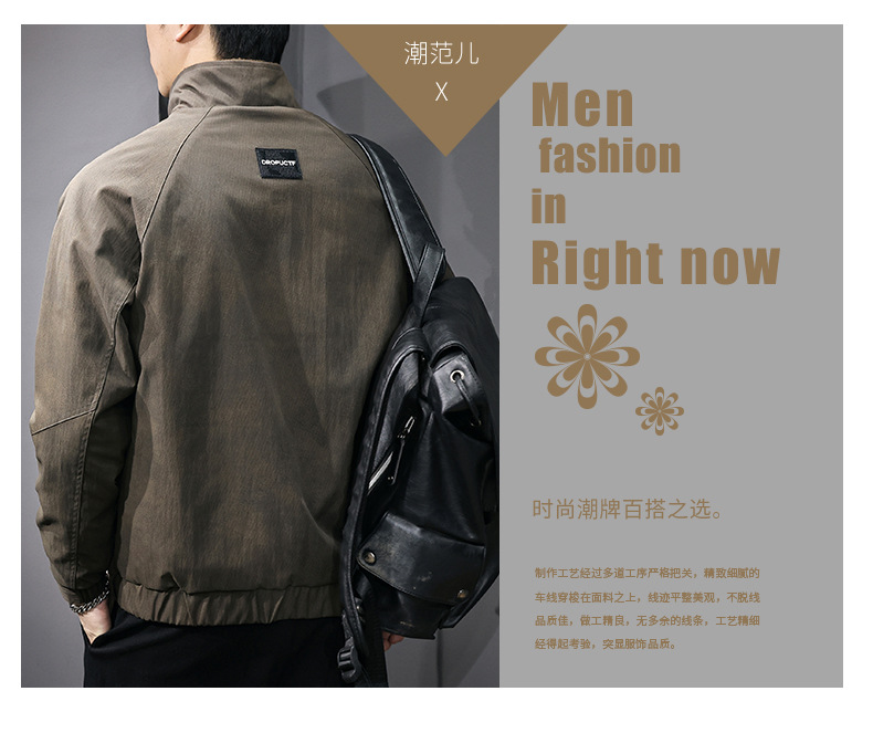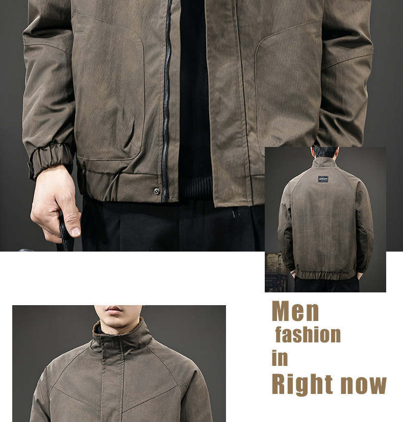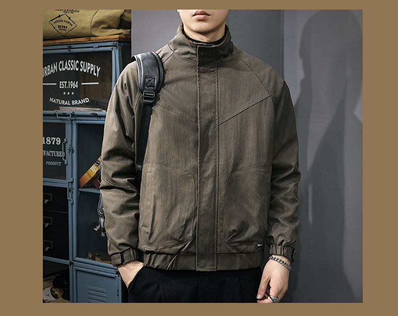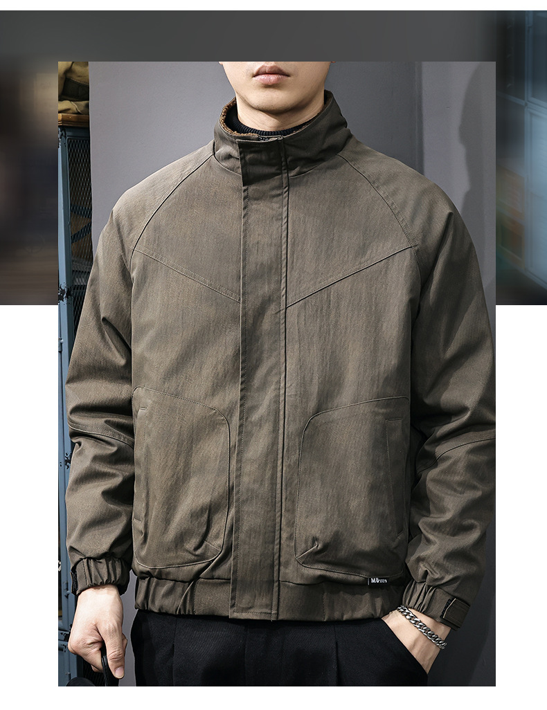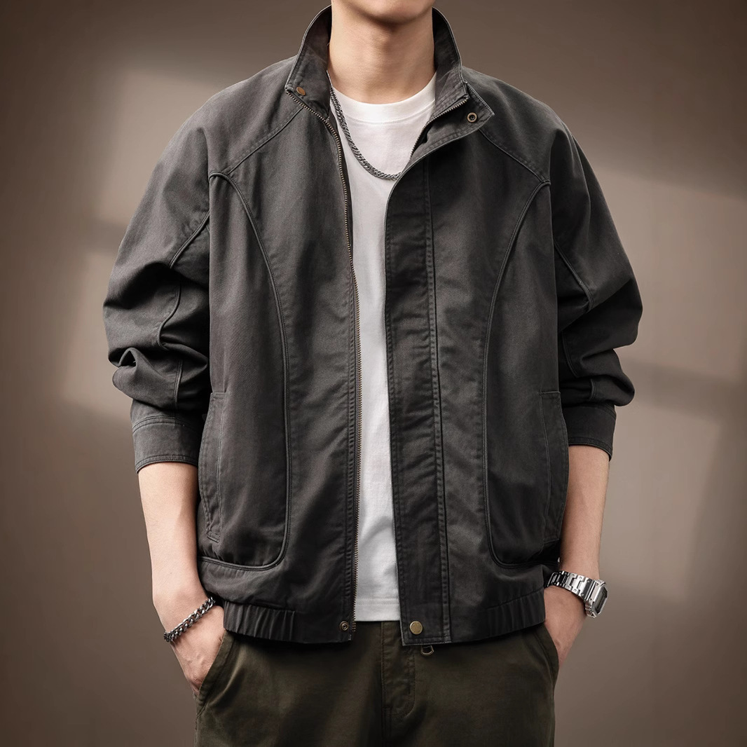 美式复古休闲外套男士秋冬2025新款休闲工装夹克立领潮牌高端衣服