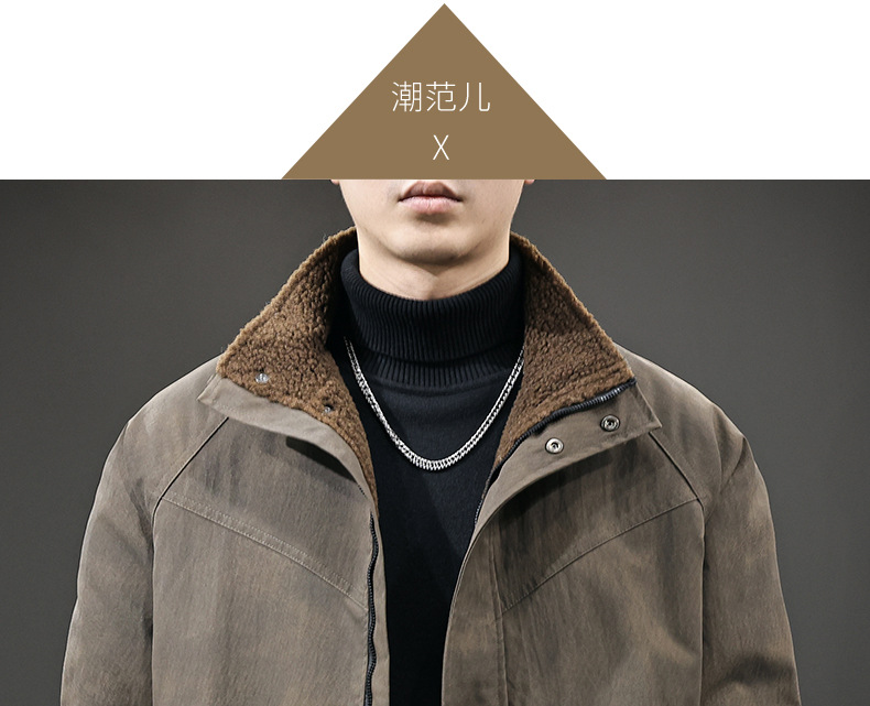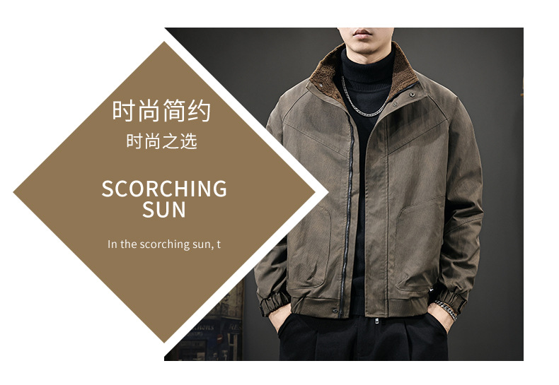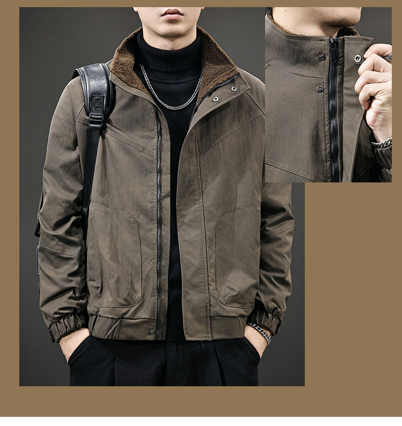 秋冬新款羊羔绒内里夹克男美拉德立领户外防风宽松保暖飞行员外套