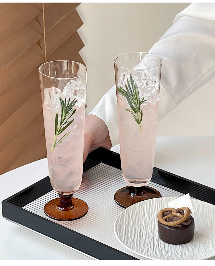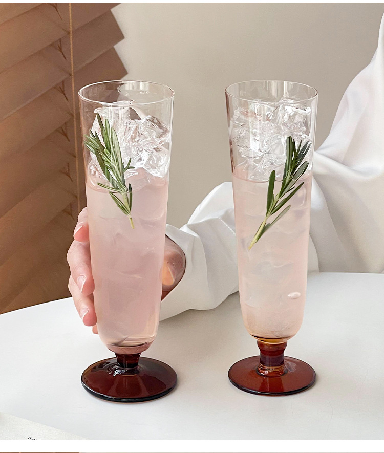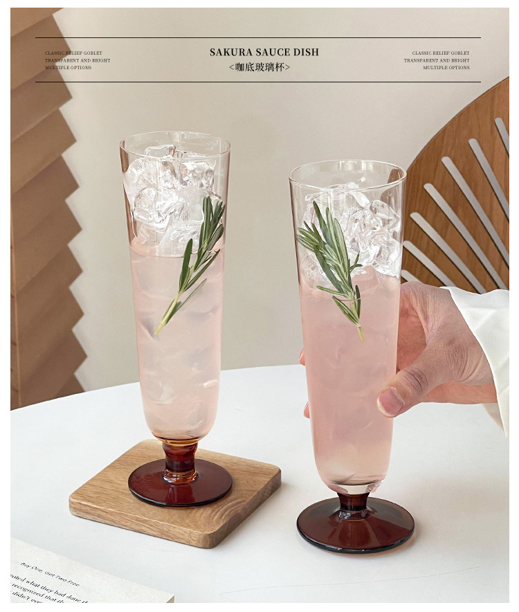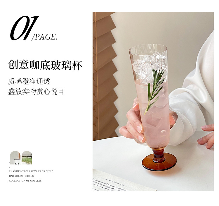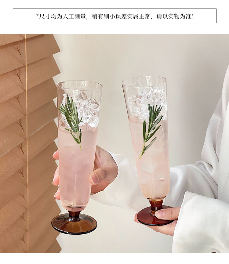 中古ins风琥珀玻璃杯小众设计高脚杯微醺酒杯饮料果汁杯鸡尾酒杯