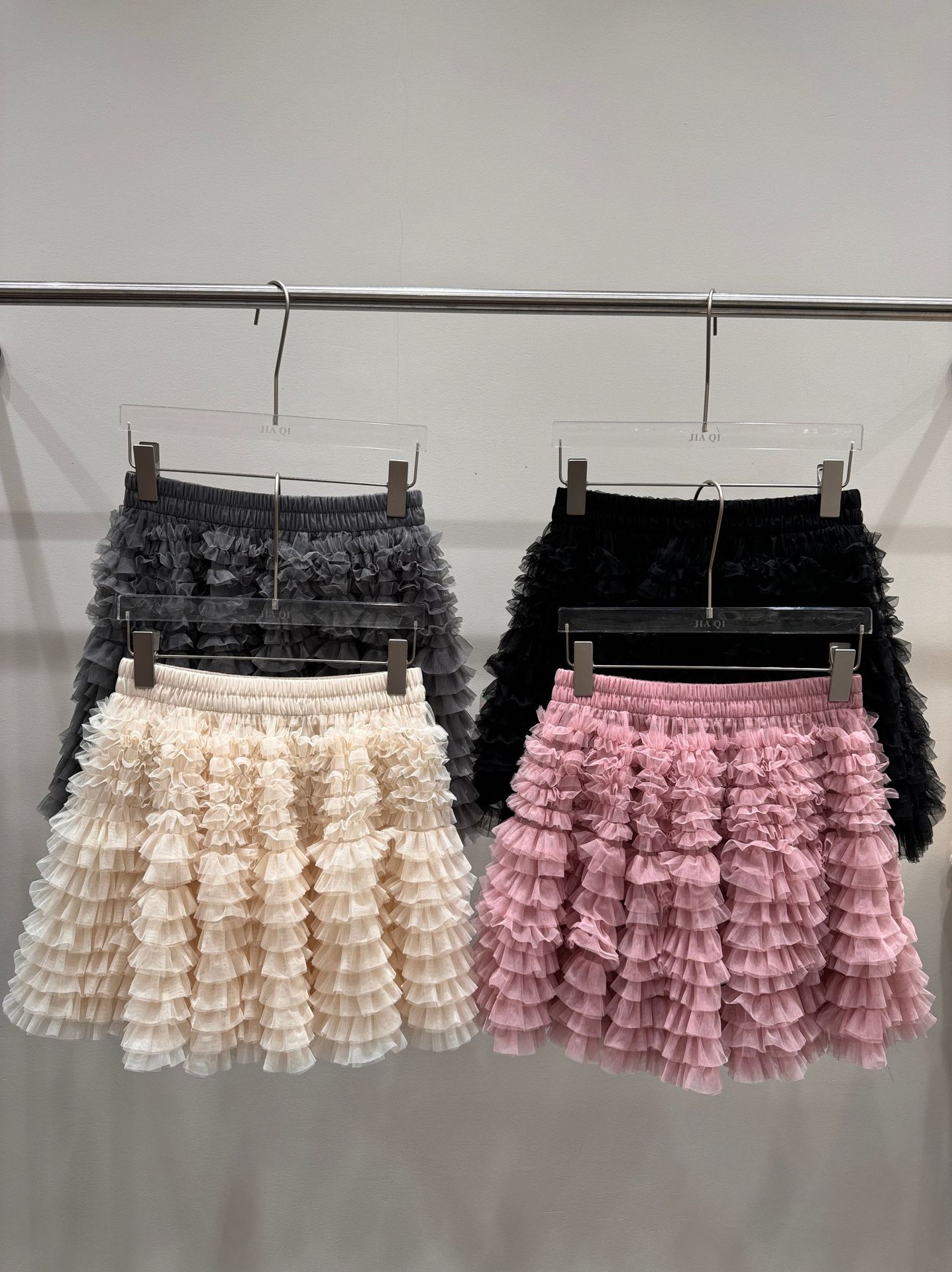 メッシュスプライシングケーキスカート2025春夏秋冬新作ミドル丈スカートAラインロングスカートパフガーゼスカート