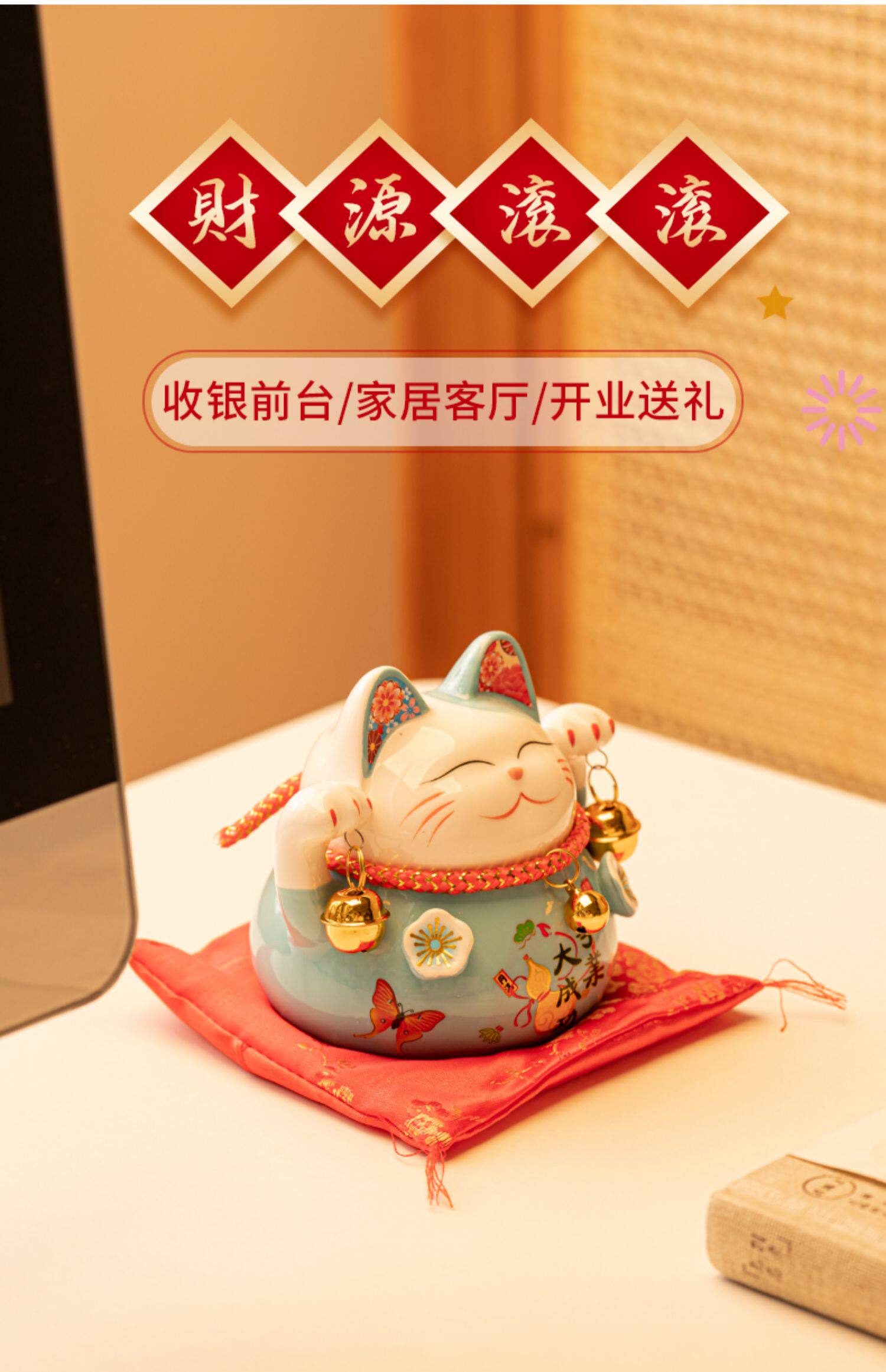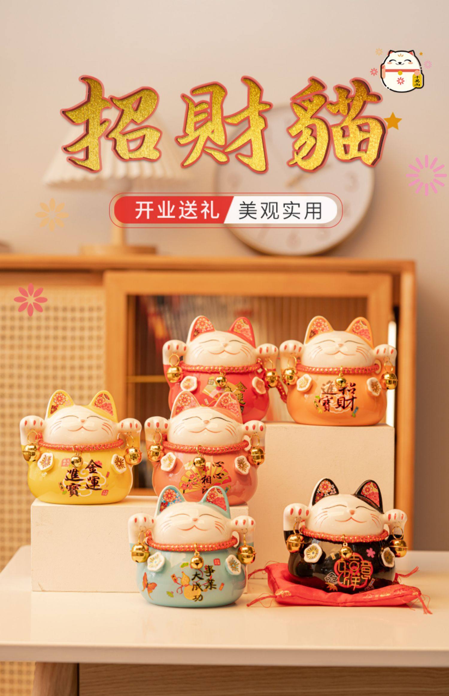 跨境新款招财猫招财陶瓷存钱罐创意新年伴手礼品家居装饰厂家批发