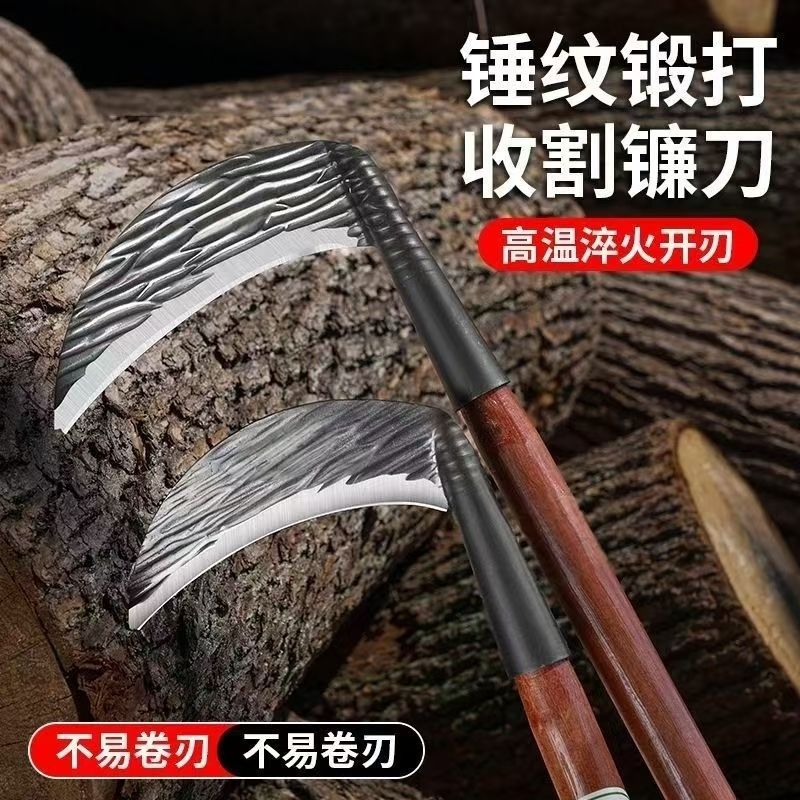 锤纹锻打农用镰刀手工老式锰钢锻打两用弯刀砍树割草砍柴钓鱼户外