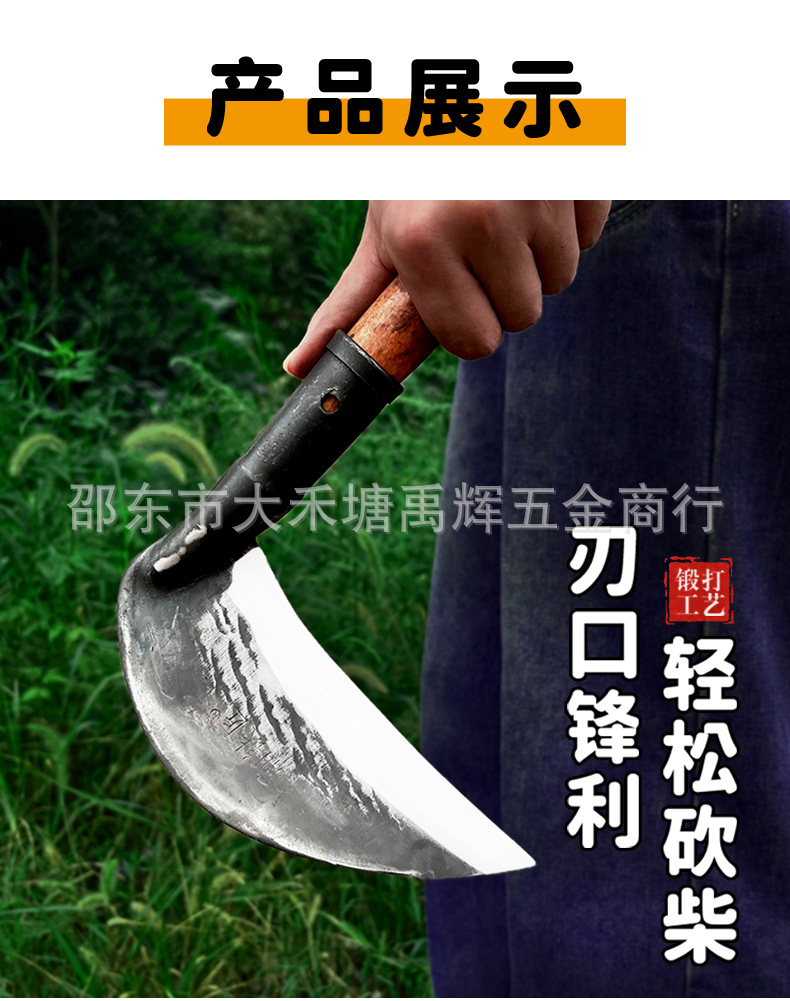 手打ち鎌屋外草刈り刀マンガン鋼柴刀農業用木切り柴刀草刈り神器専用曲げ刀