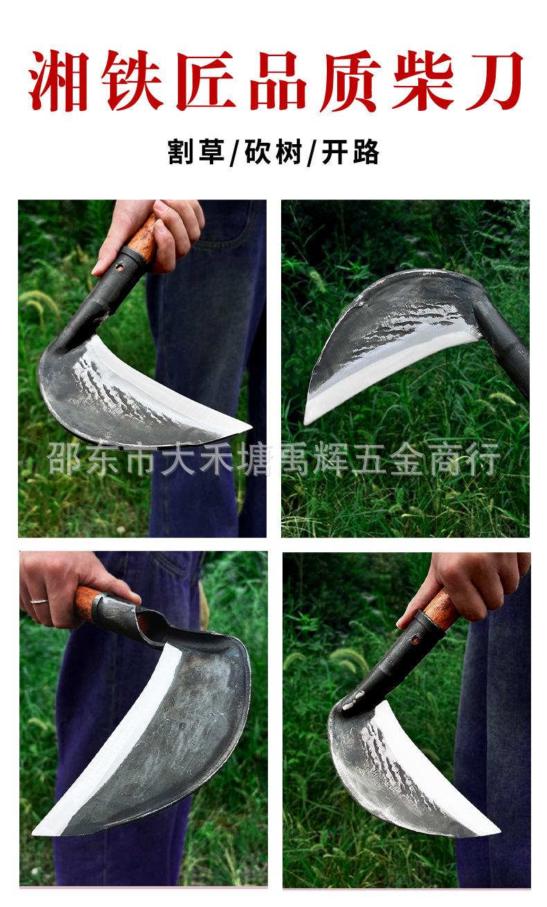 湘铁匠高锰钢锻打镰刀农用砍柴刀户外开路割草刀砍割两用木柄柴刀