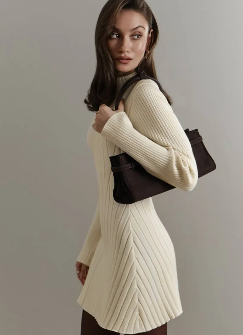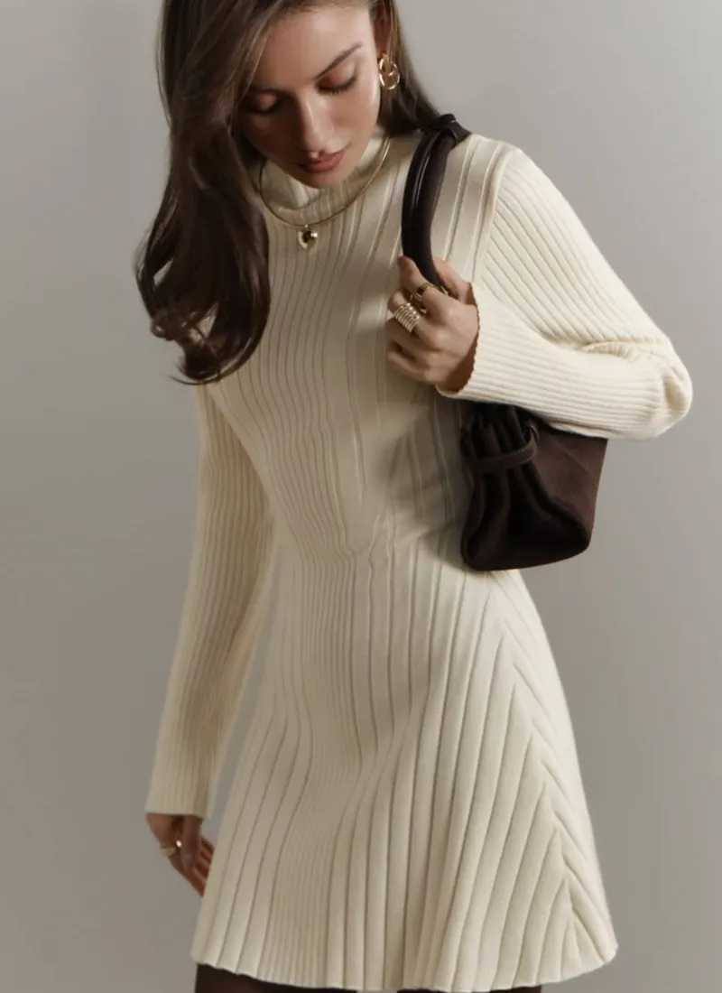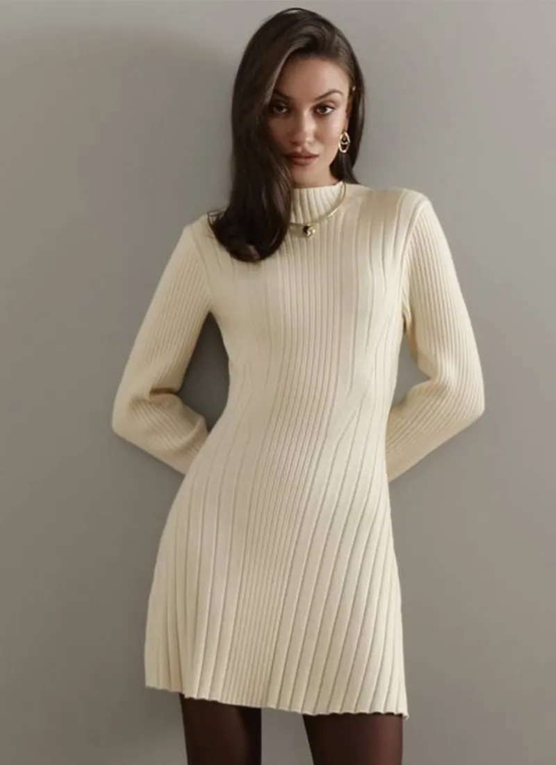 长袖半高领连衣裙针织裙2025春季外贸欧美气质俏皮A字短裙
