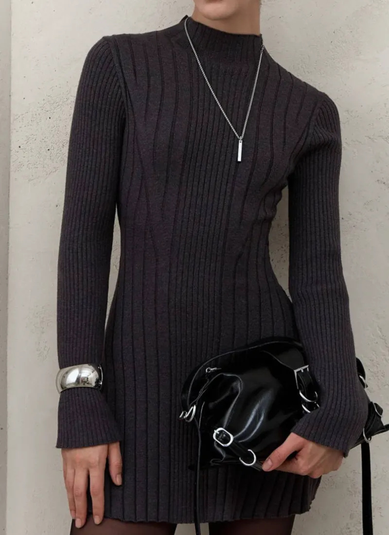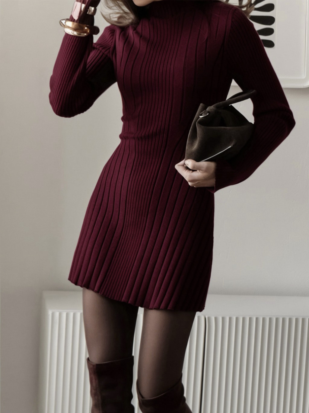 2024新型国境を越えた女装高襟ニットスカートセクシーな中長タイプのフレンチポリエステルファッションワンピース