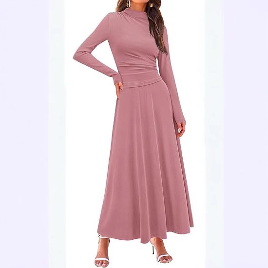 2025 クロスボーダーアマゾンスーツスカートレディースミドル丈スリムフィットファッショナブルでエレガントなラウンドネックウエストニットロングスカート