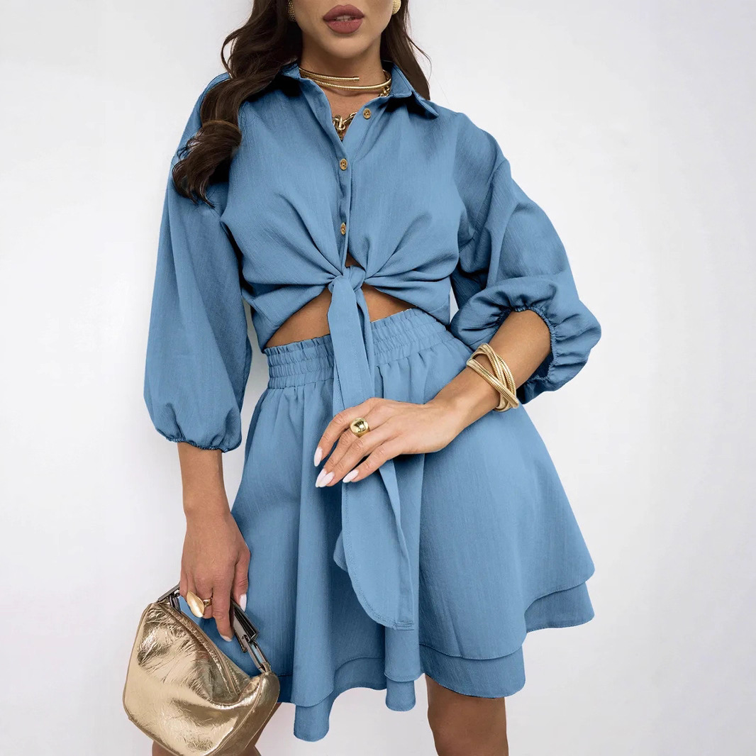 2025 夏ヨーロッパとアメリカのクロスボーダーアマゾン独立ステーションファッション新しいパフスリーブトップフリルショーツカジュアルスーツ