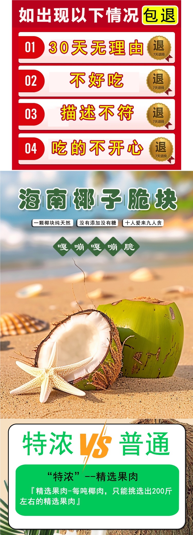 包装规格 【甜脆】椰子块250g,【特浓不加糖】椰子块250g,【特浓不加糖】椰子块250g*2包,【不加糖】椰子块250g,【不加糖】椰子块250g*2包,【甜脆】椰子块250g*2包,无糖椰子块250g+甜脆椰子块250g