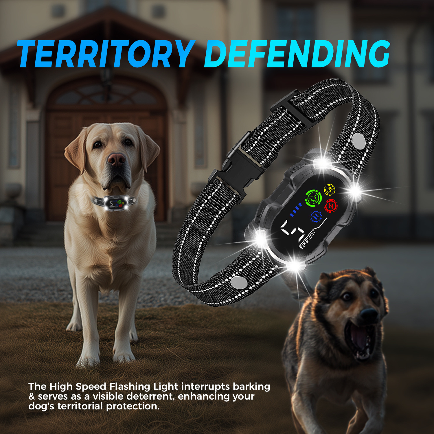 2025新款止吠器带高强度闪光灯可用于领地防护智能识别防狗叫项圈