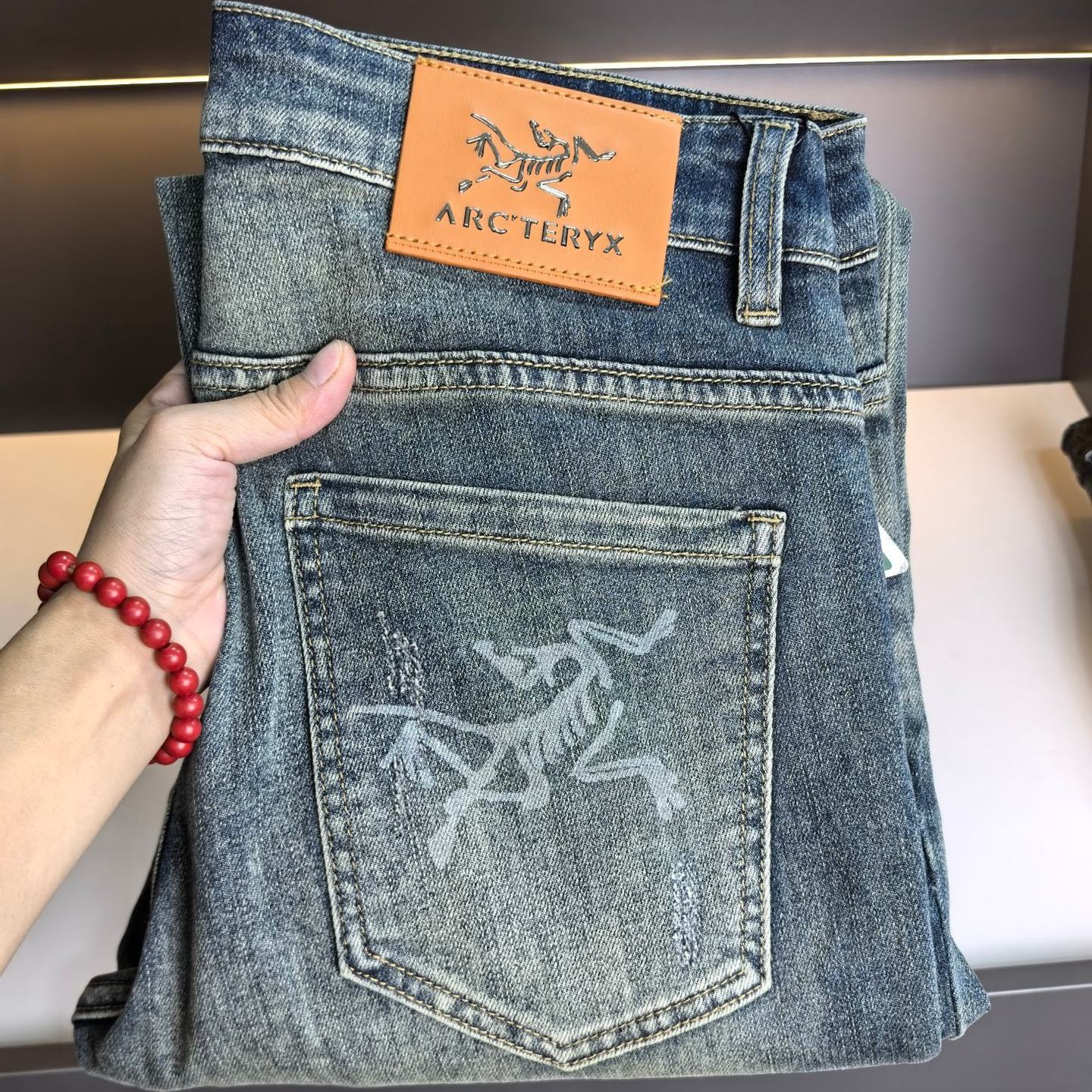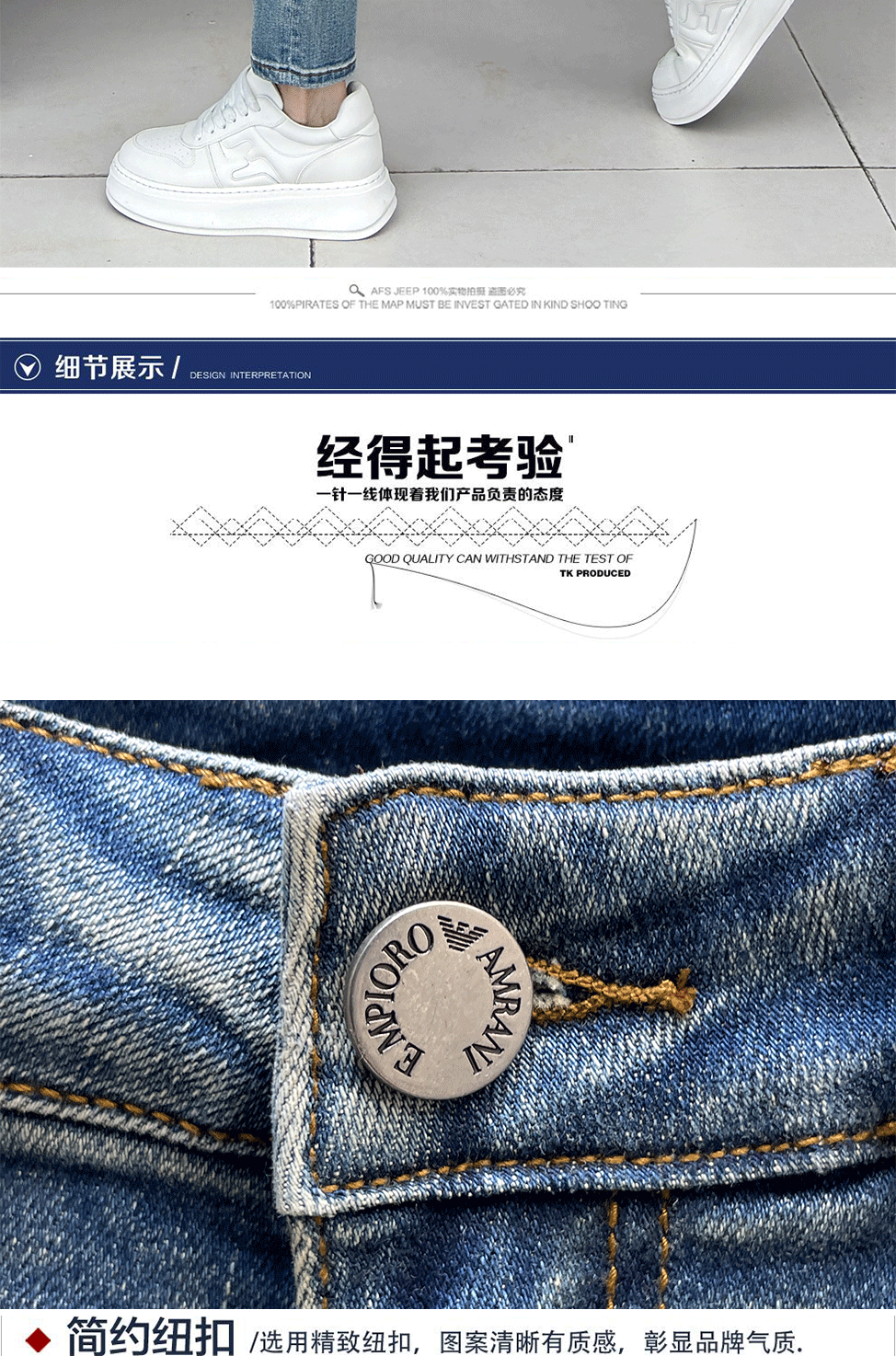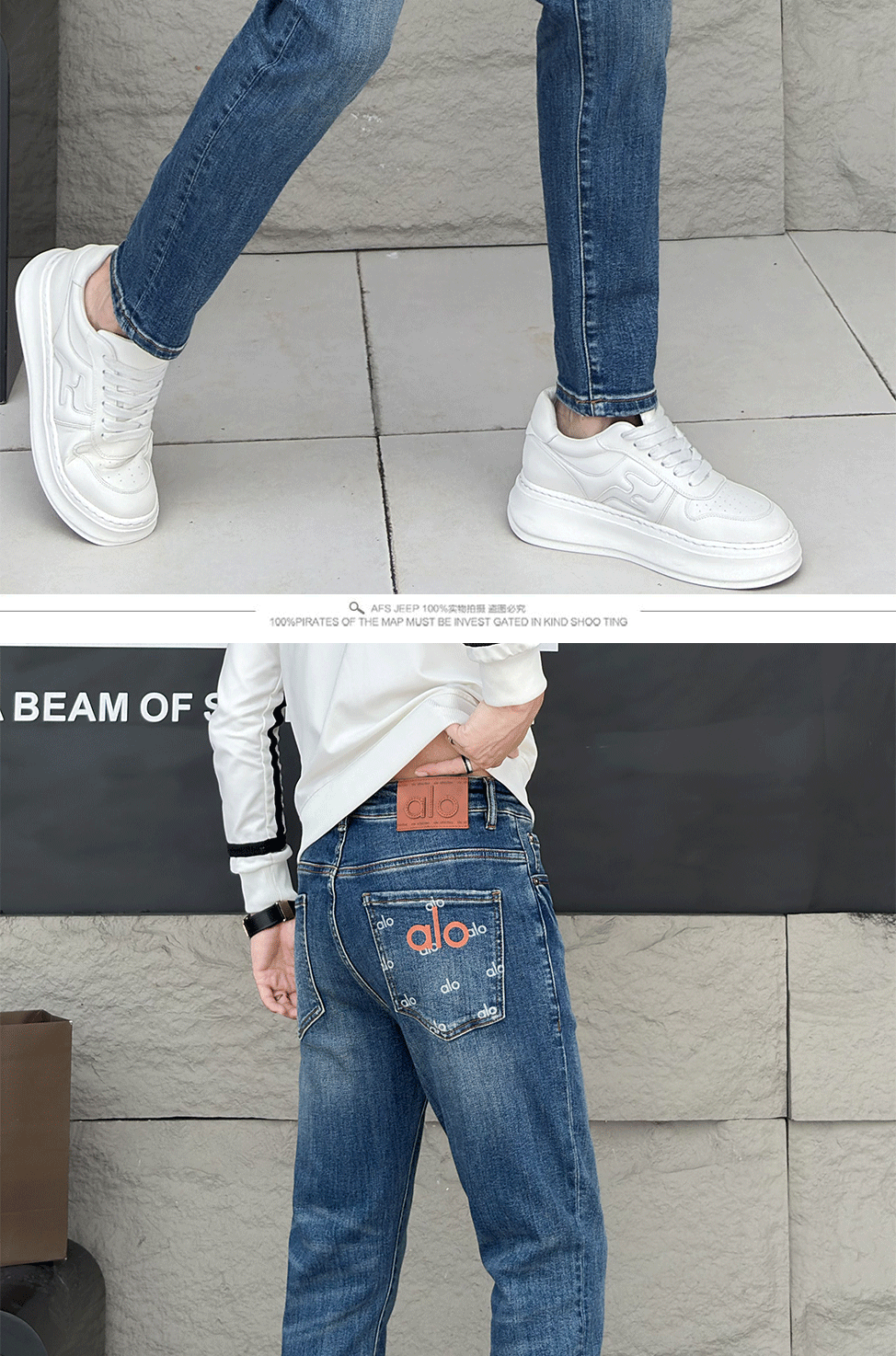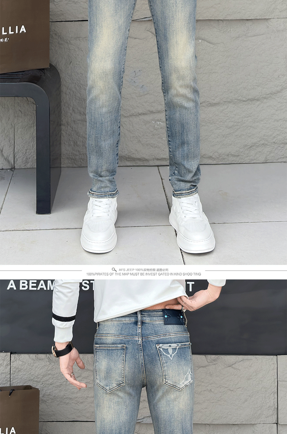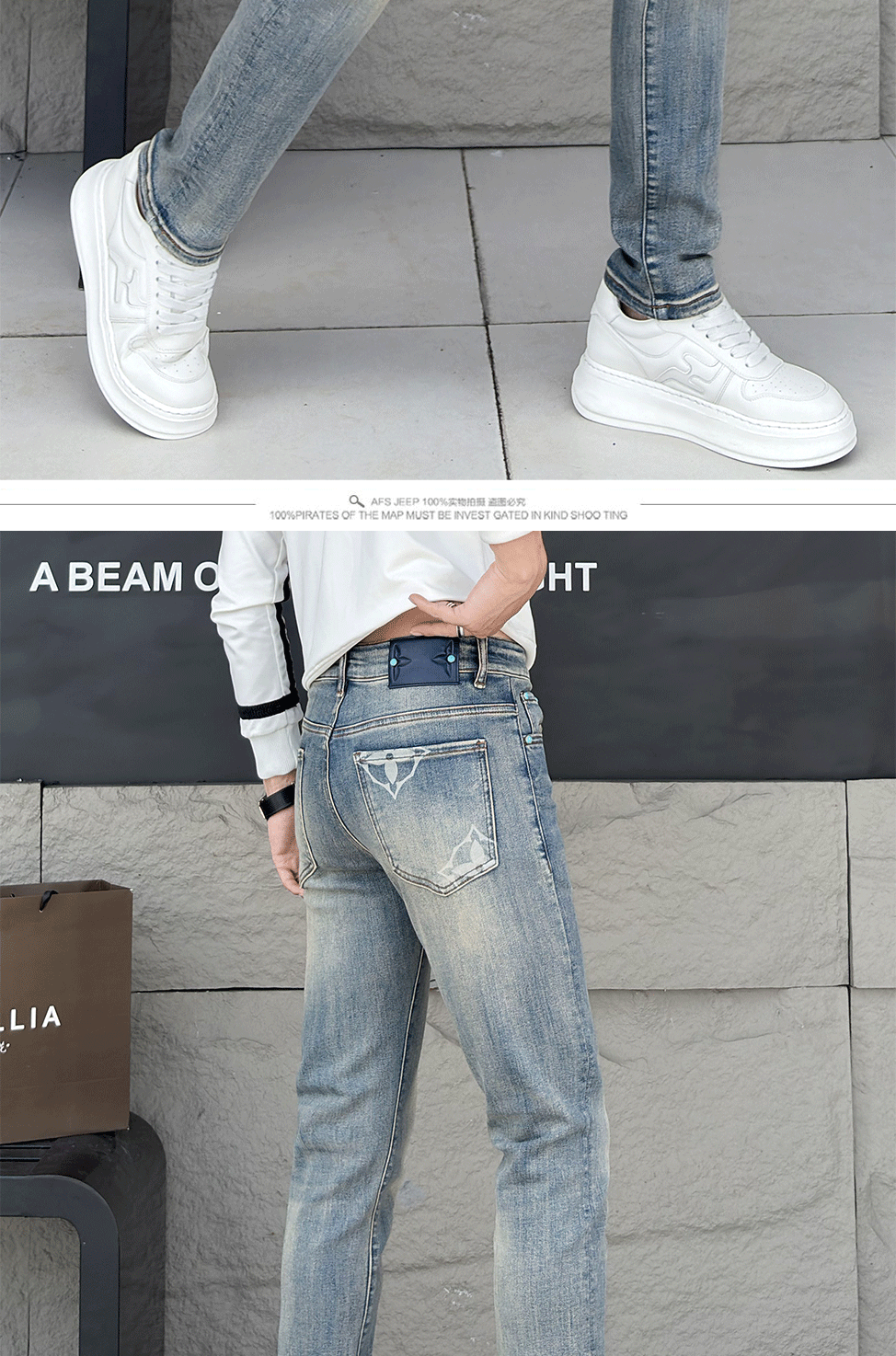 香港のトレンドブランド、高級プリントデニムパンツ、メンズ春秋新作、若者向けファッショナブルでスタイリッシュなトレンド、スリムフィットの細身ロングパンツ
