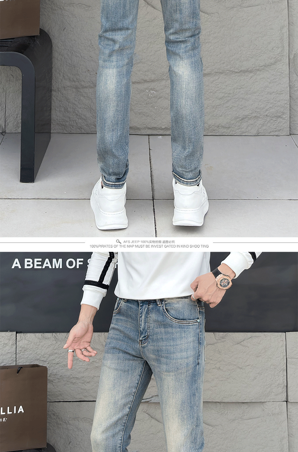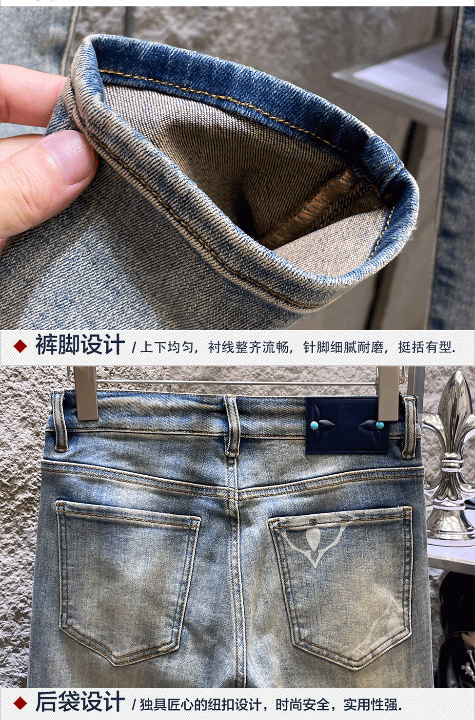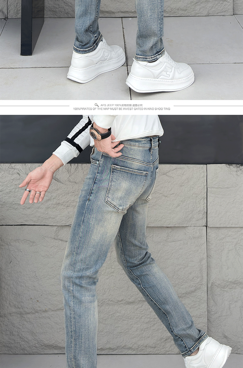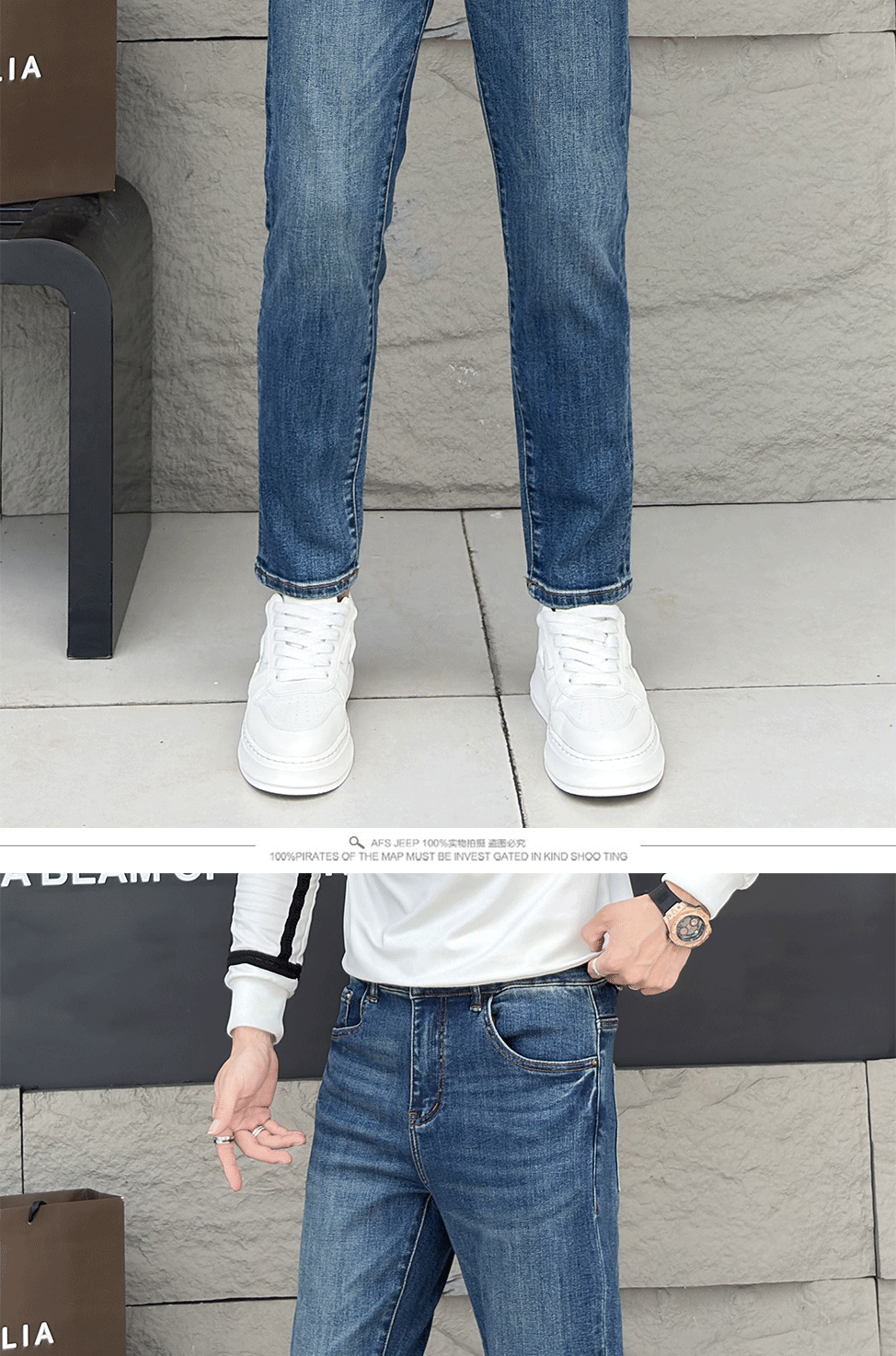 2025年新作高級メンズジーンズ秋冬ストレッチスリムフィットスモールストレートブランド欧米風カジュアルトレンドパンツ