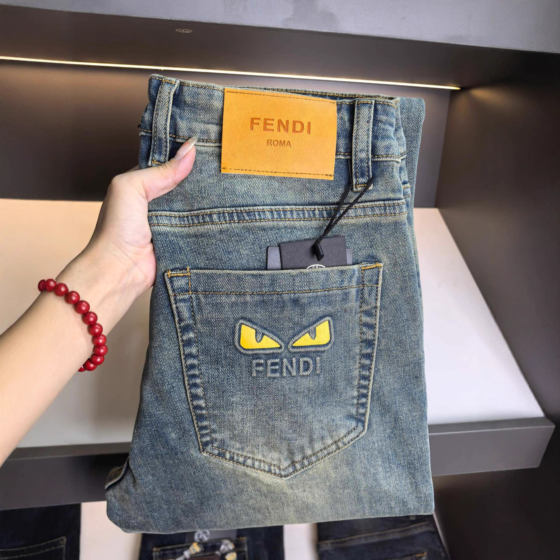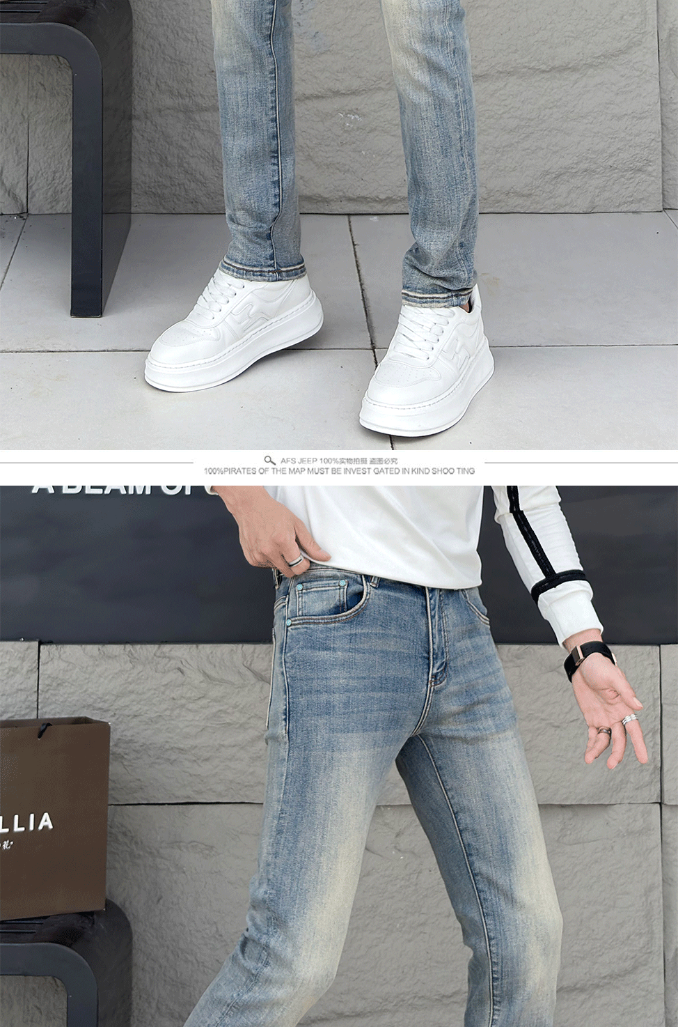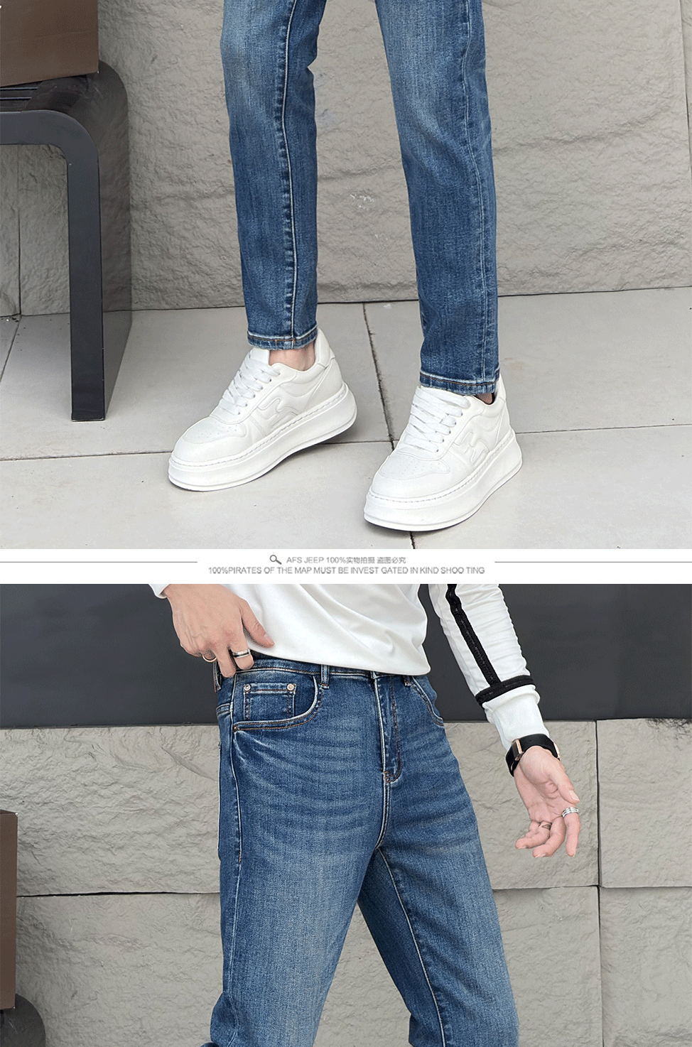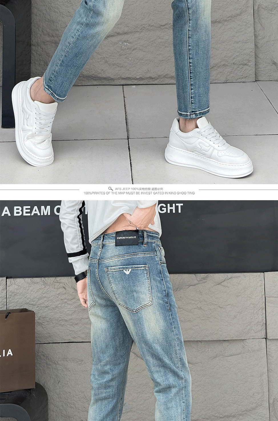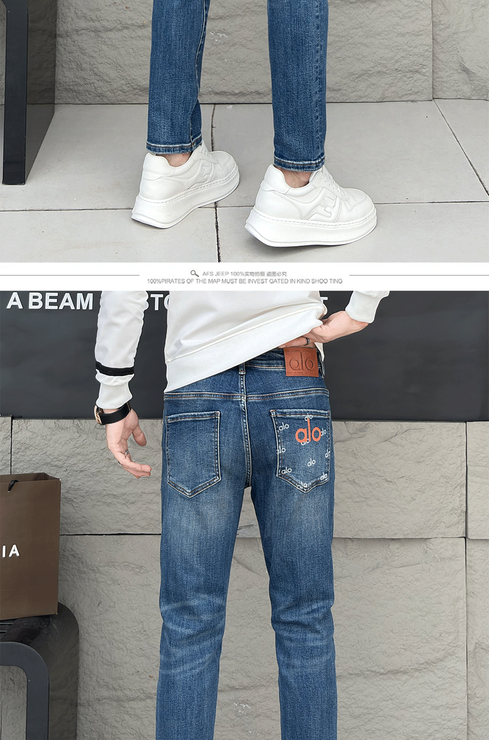 2025年新作高級メンズジーンズ秋冬ストレッチスリムフィットスモールストレートブランド欧米風カジュアルトレンドパンツ