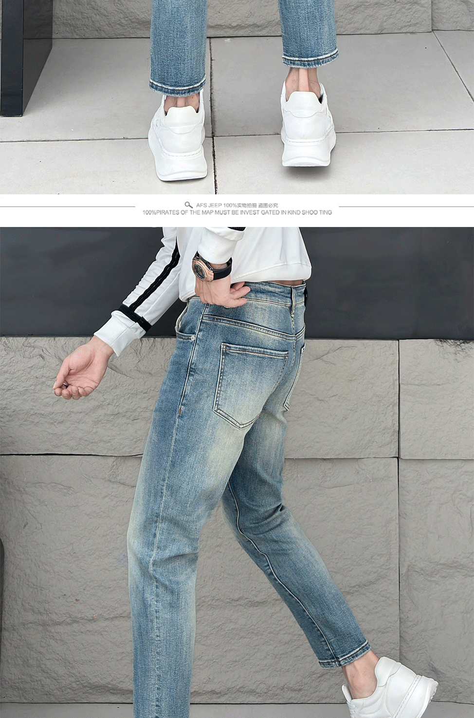 小怪兽高端欧货男士牛仔裤泥黄四季怀旧弹力洗水修身小直筒男长裤